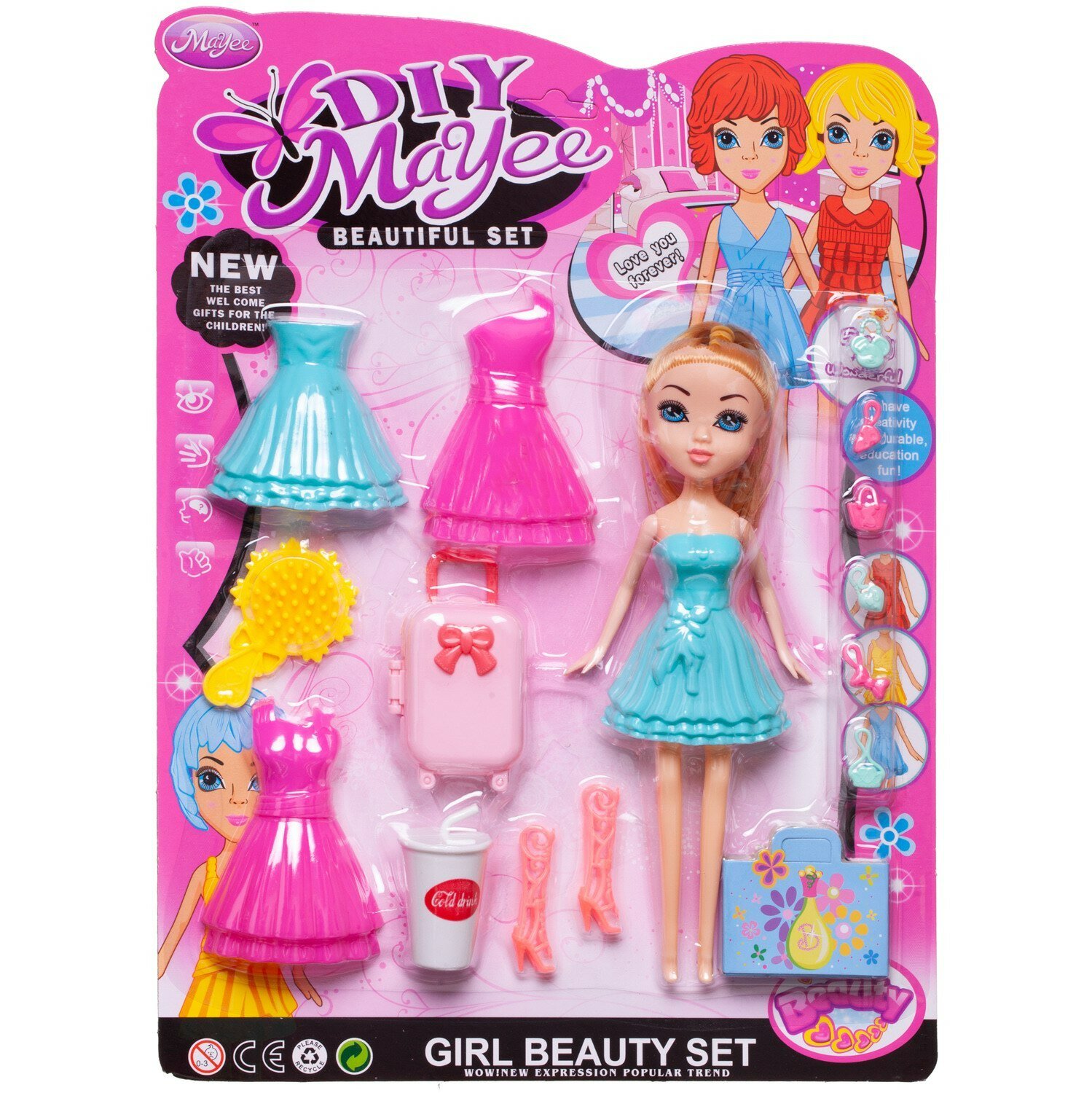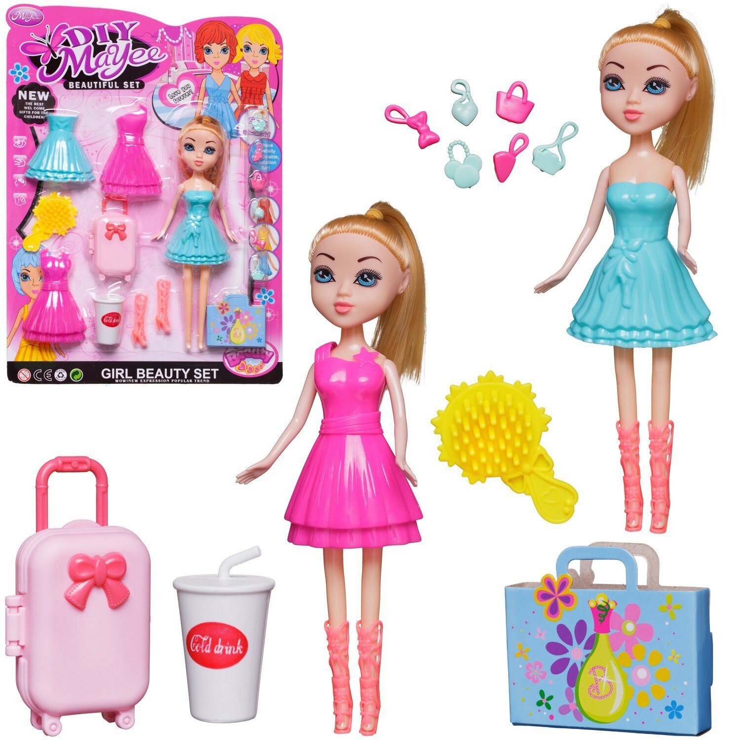 | Комплектация | кукла – 1 шт.; сапожки – 1 пара; платье – 4 детали; чемодан – 1 шт.; портфель – 1 шт.; щетка-расческа – 1 шт.; стаканчик с трубочкой – 1 шт.; аксессуары подвески - 6 шт |