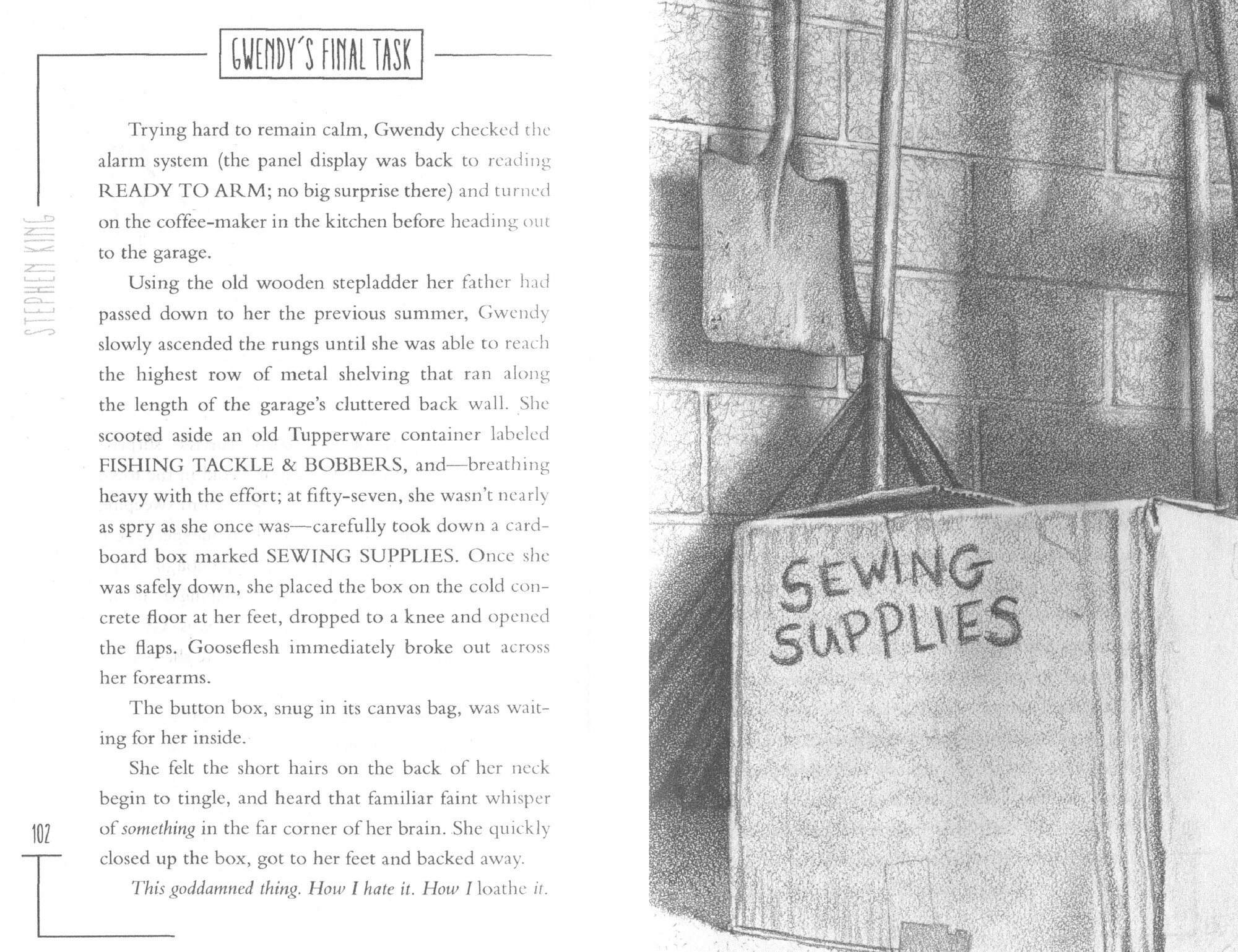 When Gwendy Peterson was twelve, a stranger named Richard Farris gave her a mysterious box for safekeeping. It offered treats and vintage coins, but it was dangerous. Pushing any of its seven coloured buttons promised death and destruction.