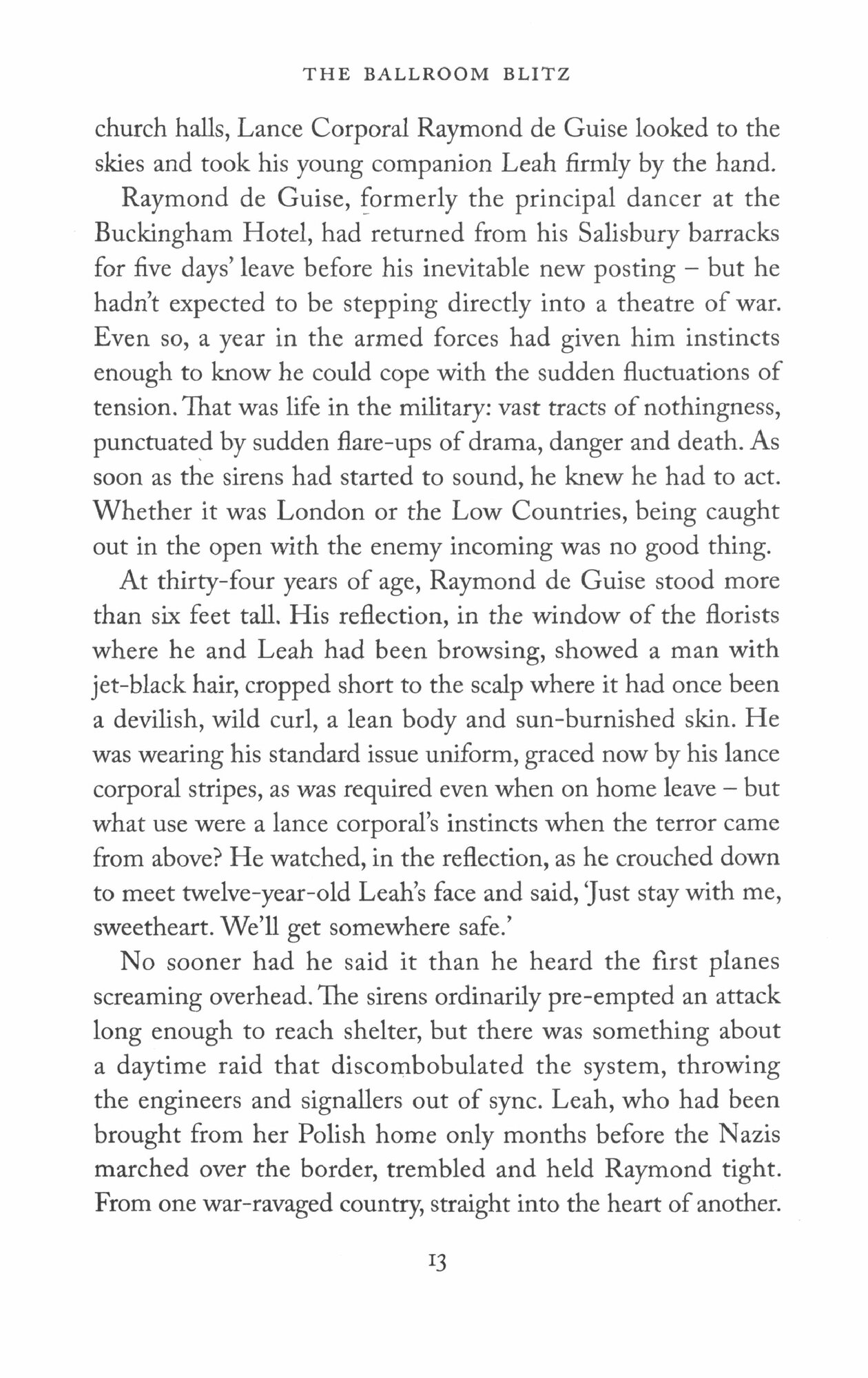 September 1940. As the skies split apart and bombs rain down on London, it's all the staff at the famed Buckingham Hotel can do to keep their guests in the luxury they're accustomed to, and evoke the magic of the Grand ballroom for them each night.