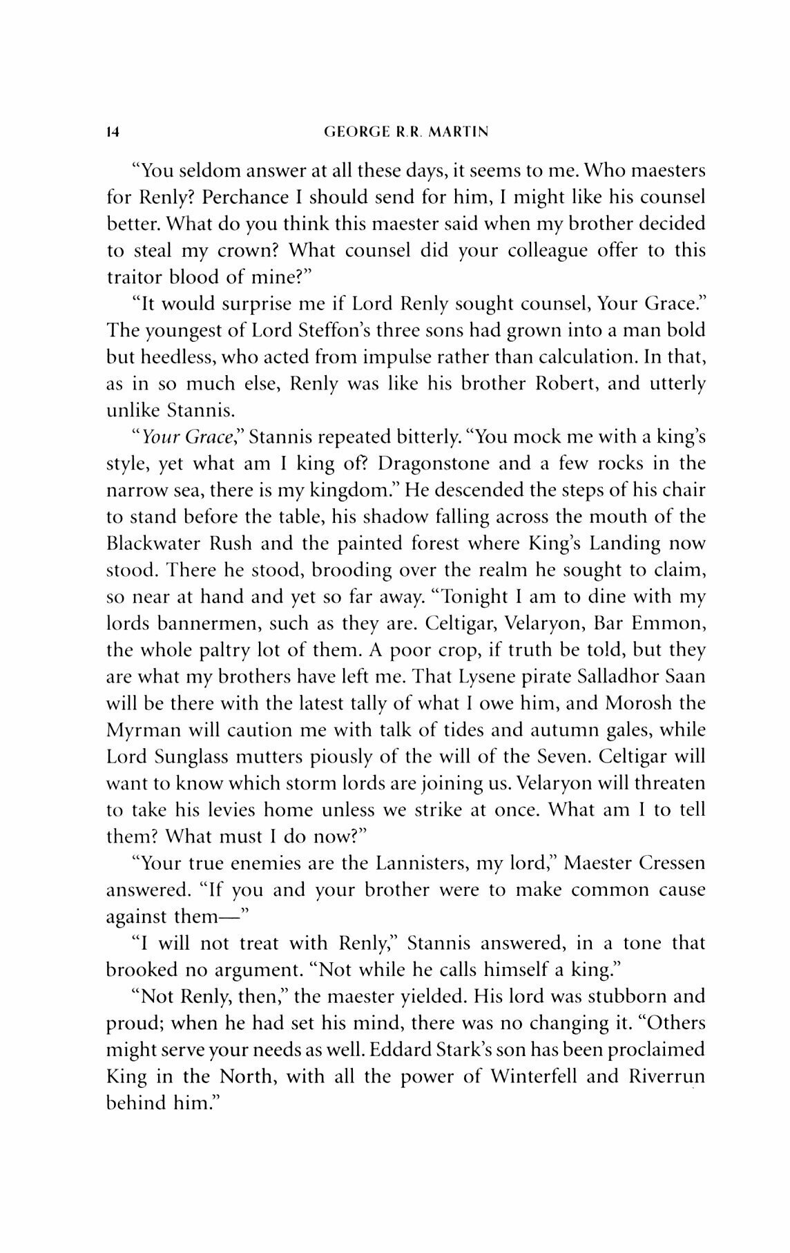 A comet in the night sky, red and malevolent, the colour of blood and flame, can only be an omen of murder and war. Stannis’s child Princess Shireen dreams of dragons waking from stone. And a white raven has brought word from the Citadel itself, foretelling summer’s end. It has been the longest summer in living memory, lasting ten years, and the smallfolk say it means an even longer winter to come…