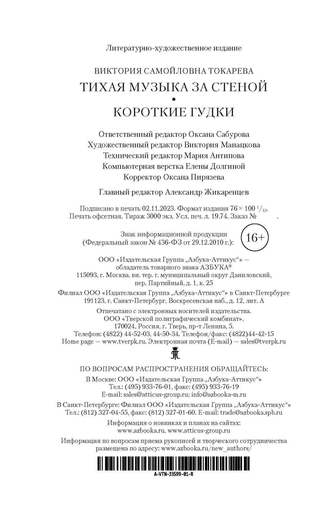 Тихая музыка за стеной. Короткие гудки (Токарева Виктория Самойловна); Азбука Издательство, 2023