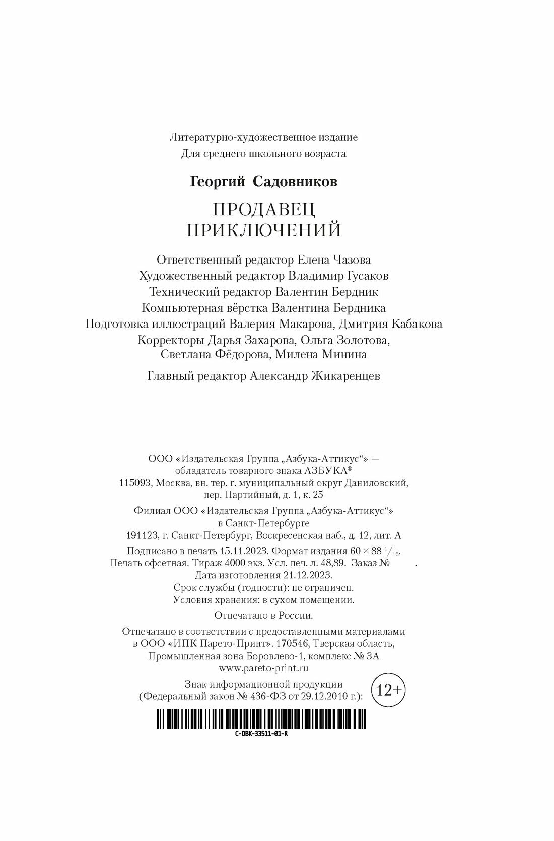 Книга: Продавец приключений (Садовников Георгий Михайлович); Азбука, 2023