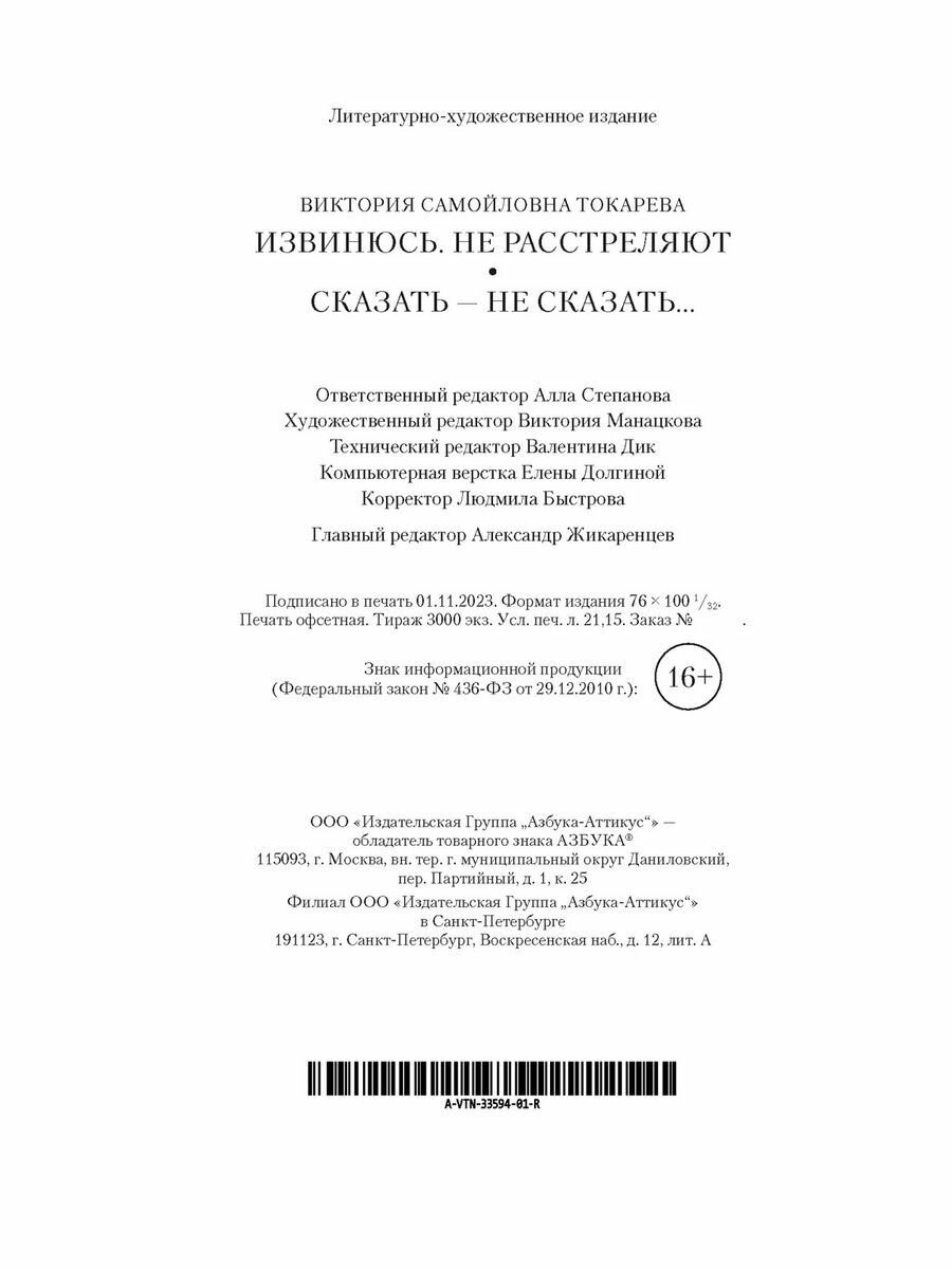 Извинюсь. Не расстреляют. Сказать — не сказать... (Токарева Виктория Самойловна); Азбука Издательство, 2024