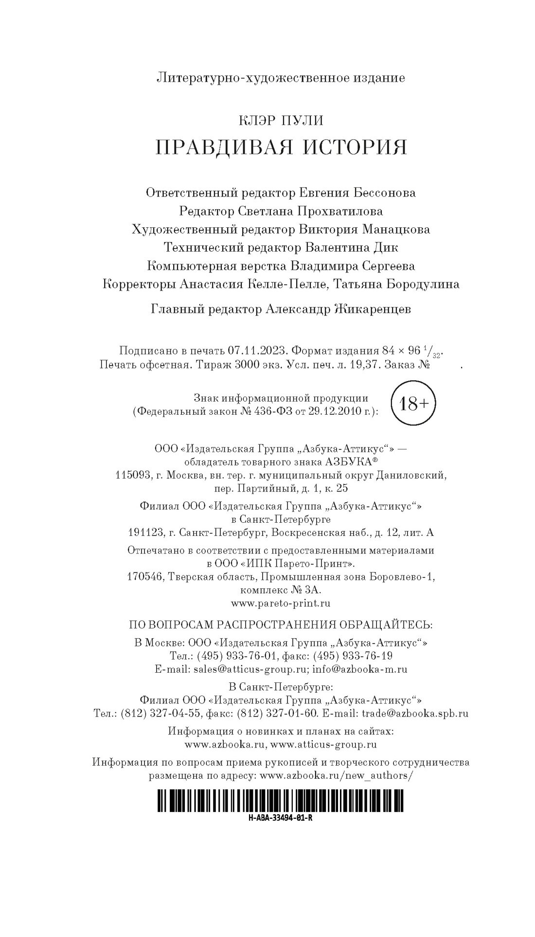 Книга: Правдивая история (Пули Клэр); Азбука, 2023