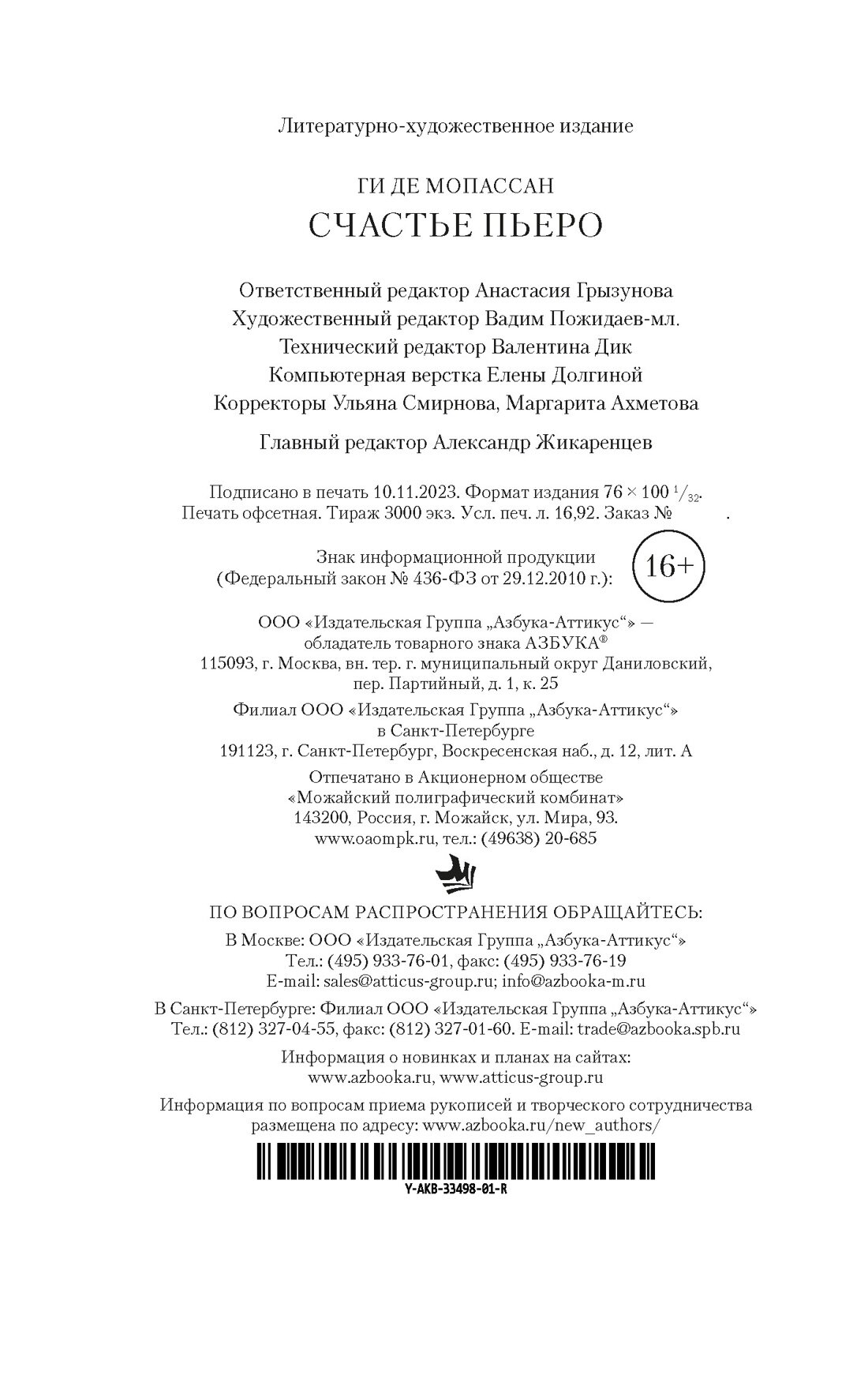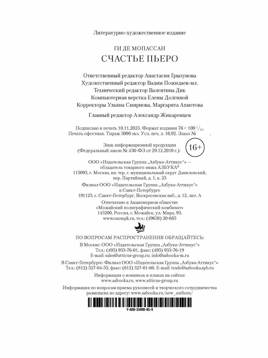 Книга: Счастье Пьеро (Ги де Мопассан); Азбука, 2023