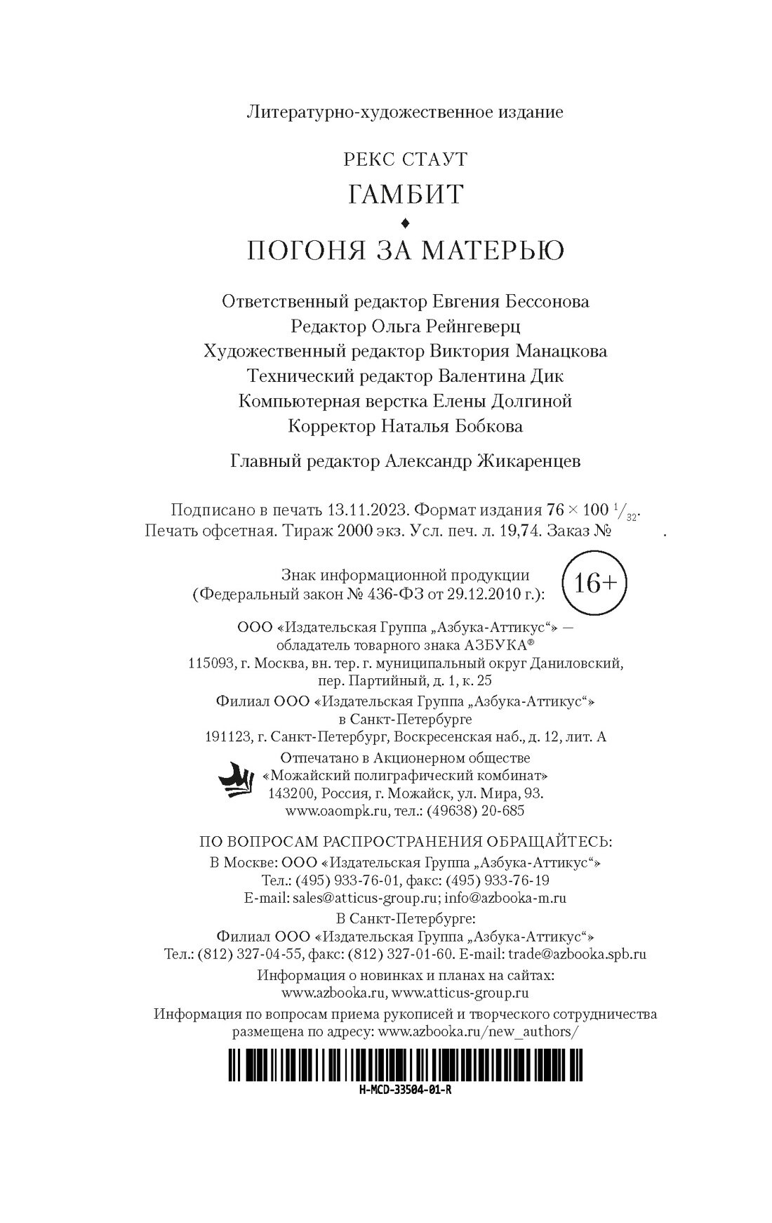 Гамбит. Погоня за матерью (Рекс Стаут); Азбука, 2023