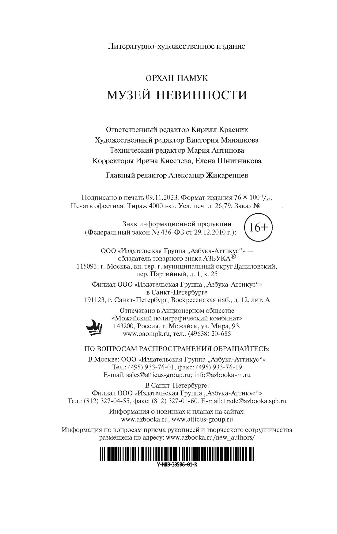 Книга: Музей Невинности (Памук Орхан); Азбука, 2023