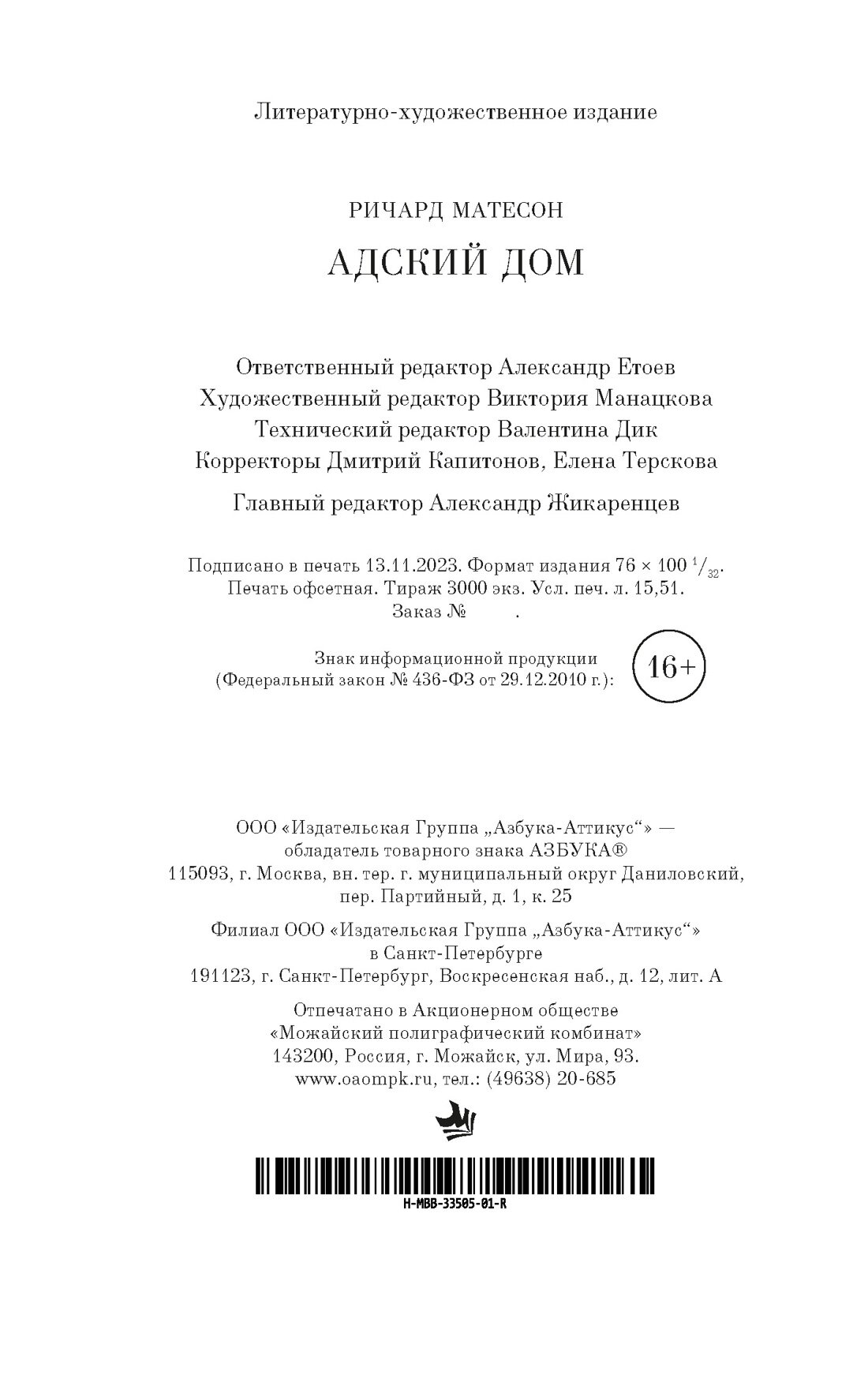 Книга: Адский дом (Ричард Матесон); Азбука, 2023