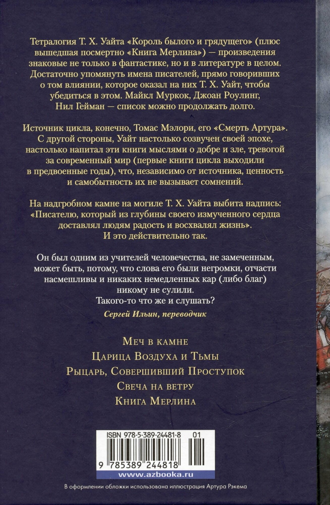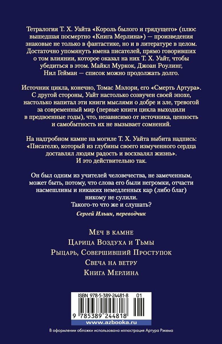 Тетралогия Т. Х. Уайта «Король былого и грядущего» (плюс вышедшая посмертно «Книга Мерлина») — произведения знаковые не только в фантастике, но и в литературе в целом. Достаточно упомянуть имена писателей, прямо говоривших о том влиянии, которое оказал на них Т. Х. Уайт, чтобы убедиться в этом. Майкл Муркок, Джоан Роулинг, Нил Гейман — список можно продолжать долго. Источник цикла, конечно, Томас Мэлори, его «Смерть Артура». С другой стороны, Уайт настолько созвучен своей эпохе, настолько напитал эти книги мыслями о добре и зле, тревогой за современный мир (первые книги цикла выходили в предвоенные годы), что, независимо от источника, ценность и самобытность их не вызывает сомнений. На надгробном камне на могиле Т. Х. Уайта выбита надпись: «Писателю, который из глубины своего измученного сердца доставлял людям радость и восхвалял жизнь». И это действительно так.