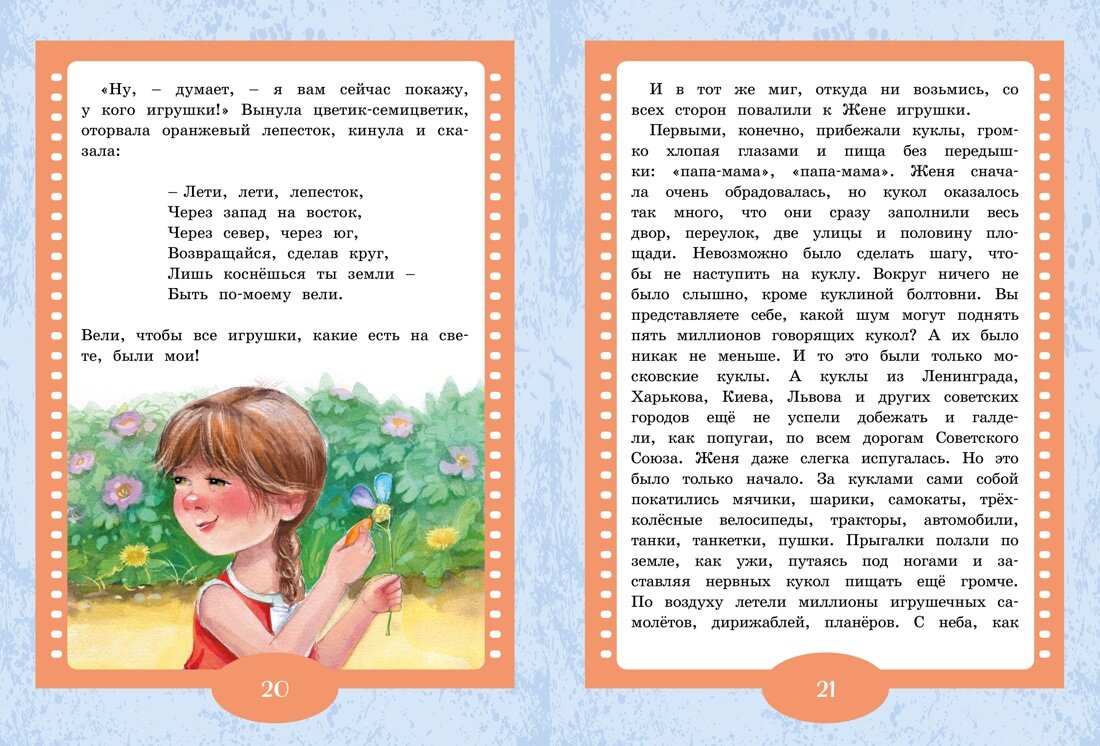У каждого в детстве есть любимые книжки. Они зачитаны до дыр, потому что именно по ним лучше всего учиться читать. А если по такой книжке сделан мультфильм – это вдвойне классная книжка! И как же здорово – прочитать историю, а потом посмотреть мультик про любимых героев!В книгу вошли две замечательные сказки Валентина Катаева – «Цветик-семицветик» и «Дудочка и кувшинчик». Весёлые, увлекательные истории, ставшие любимыми для многих поколений юных читателей, помогут ребёнку усвоить важные жизненные уроки, научиться быть добрым, смелым и трудолюбивым.