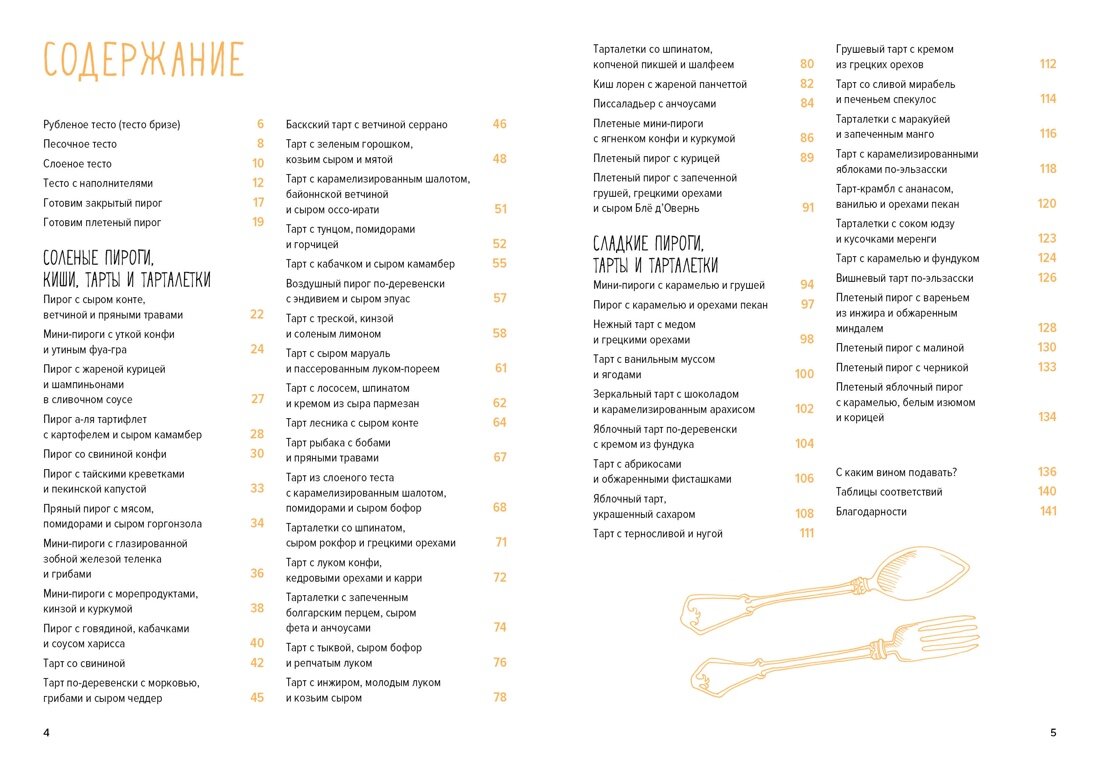 Достойная коллекция рецептов открытых, закрытых и плетеных пирогов, кишей, тартов и тарталеток, которые украсят ваш стол в будни и в праздники в качестве основного блюда или десерта. Вы узнаете, как готовить основу для множества разновидностей пирогов (тесто бризе, песочное, слоеное тесто, тесто с разными добавками и наполнителями) и познакомитесь с замечательным разнообразием нежных и сытных начинок. Сыр, овощи, ветчина, картофель, креветки, орехи, грибы, пряные травы, сливки, варенье, джем — ваши любимые продукты, самые свежие и ароматные, лягут в основу отменных начинок для свежеиспеченных пирогов, создающих уют и гармонию в вашем доме!