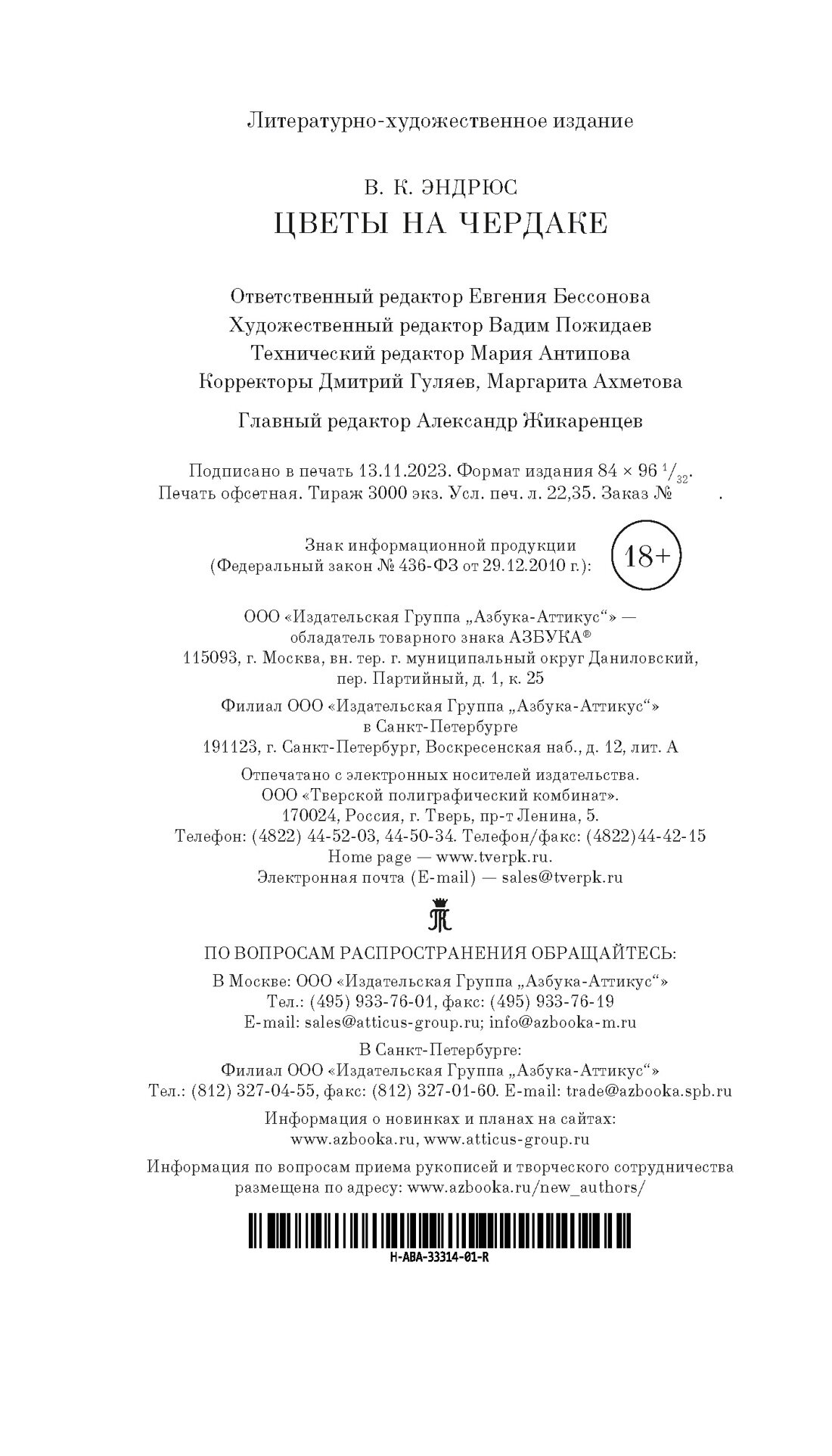 Книга: Цветы на чердаке (В.К. Эндрюс); Азбука, 2024