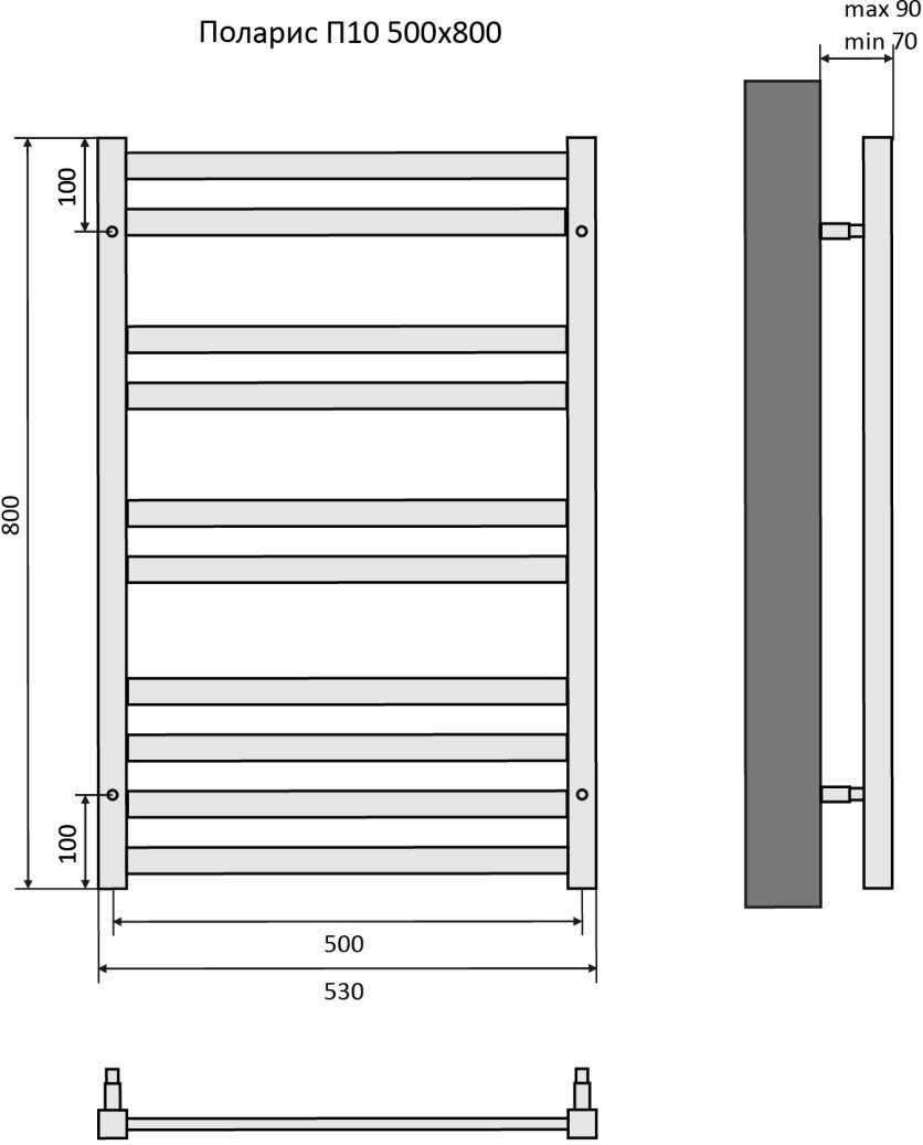 Водяной полотенцесушитель Aquatek Поларис П10 500x800 AQ KO1080CH Хром (размер: 53x80 см)