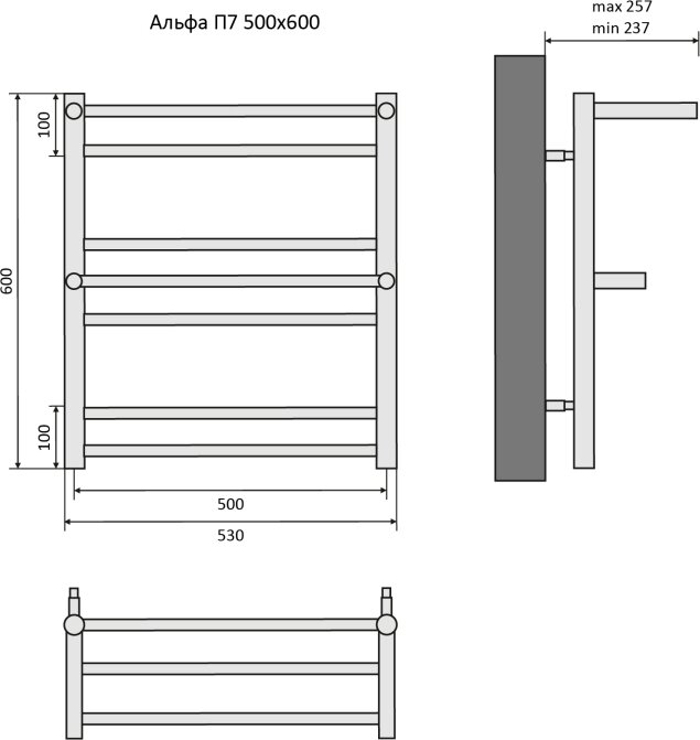 Водяной полотенцесушитель Aquatek Альфа П7 500x600 AQ RRP0760CH с полкой Хром (размер: 53x60 см)