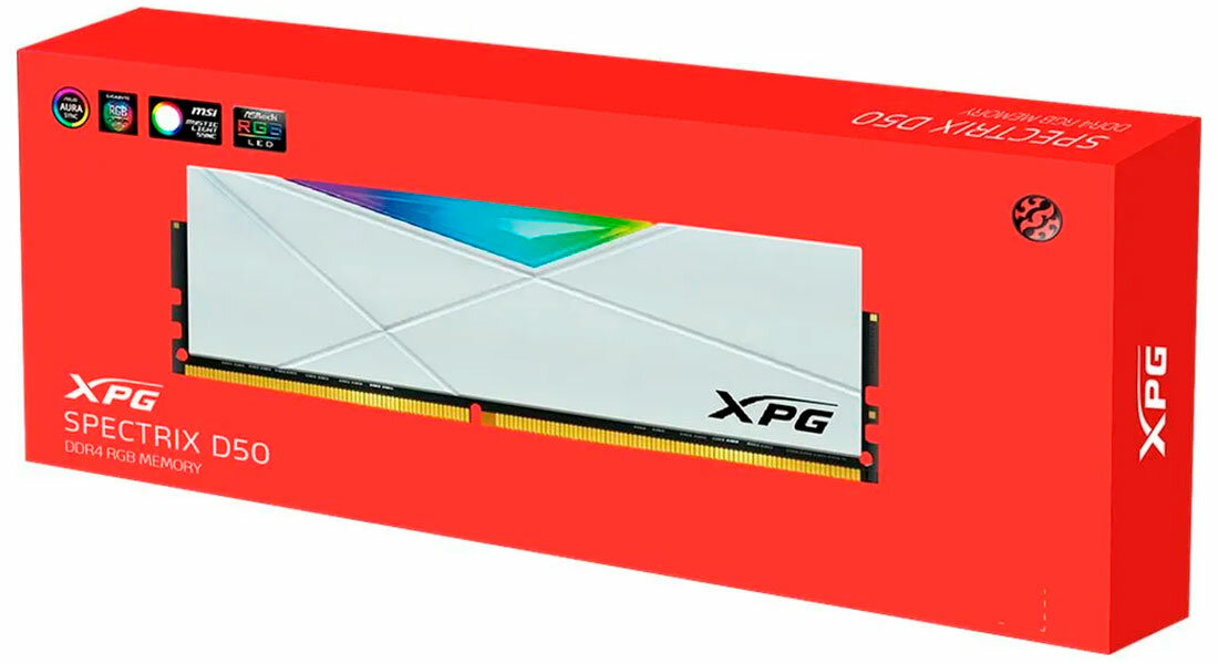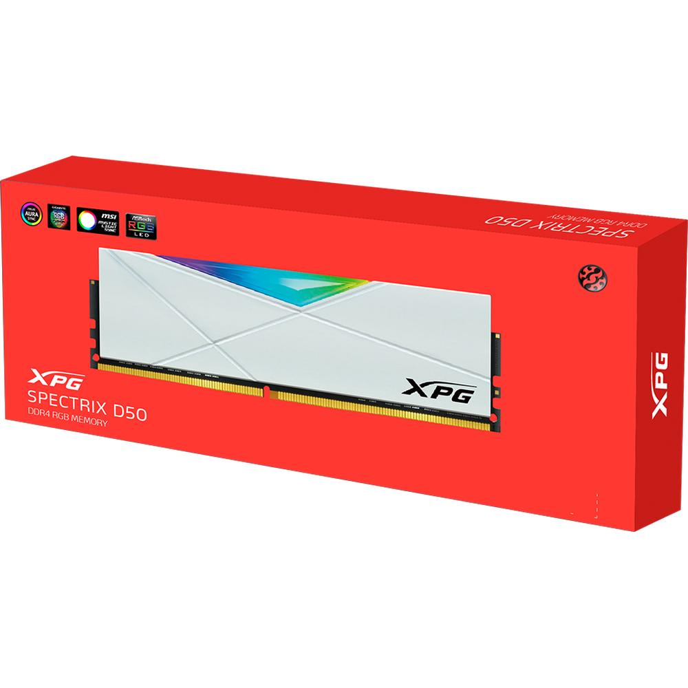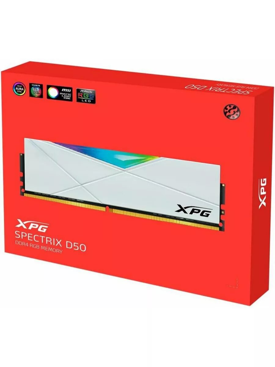 Модуль памяти DDR4 8GB ADATA XPG SPECTRIX D50 RGB white PC4-25600 3200MHz CL16 1.35V AX4U32008G16A-SW50