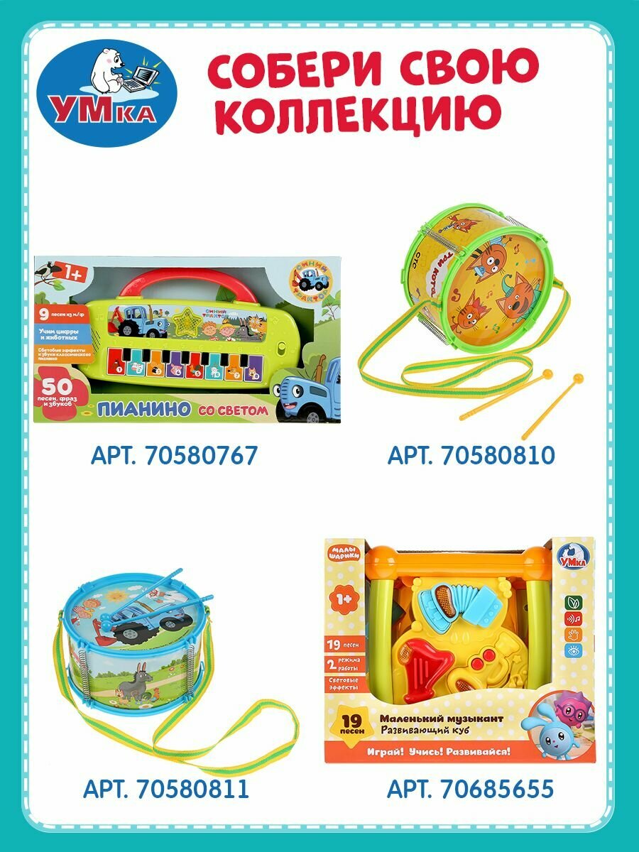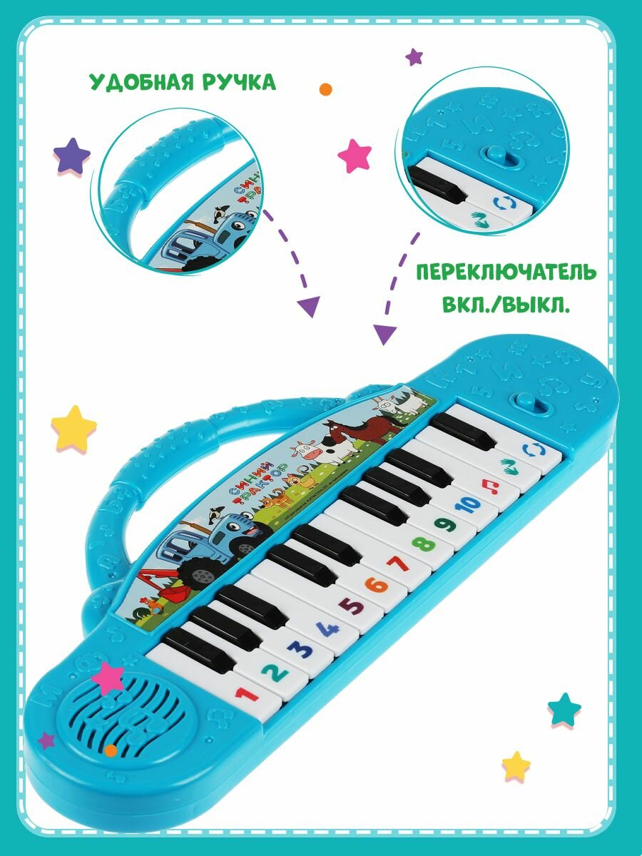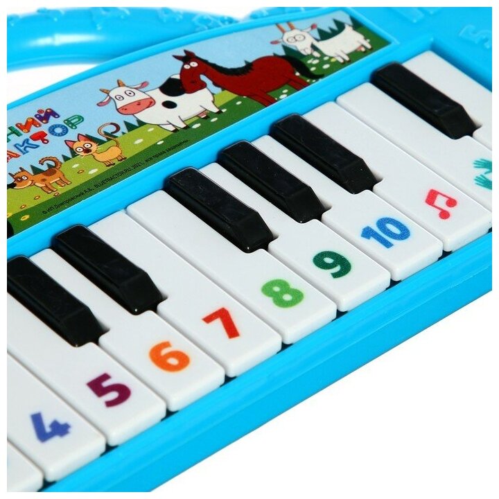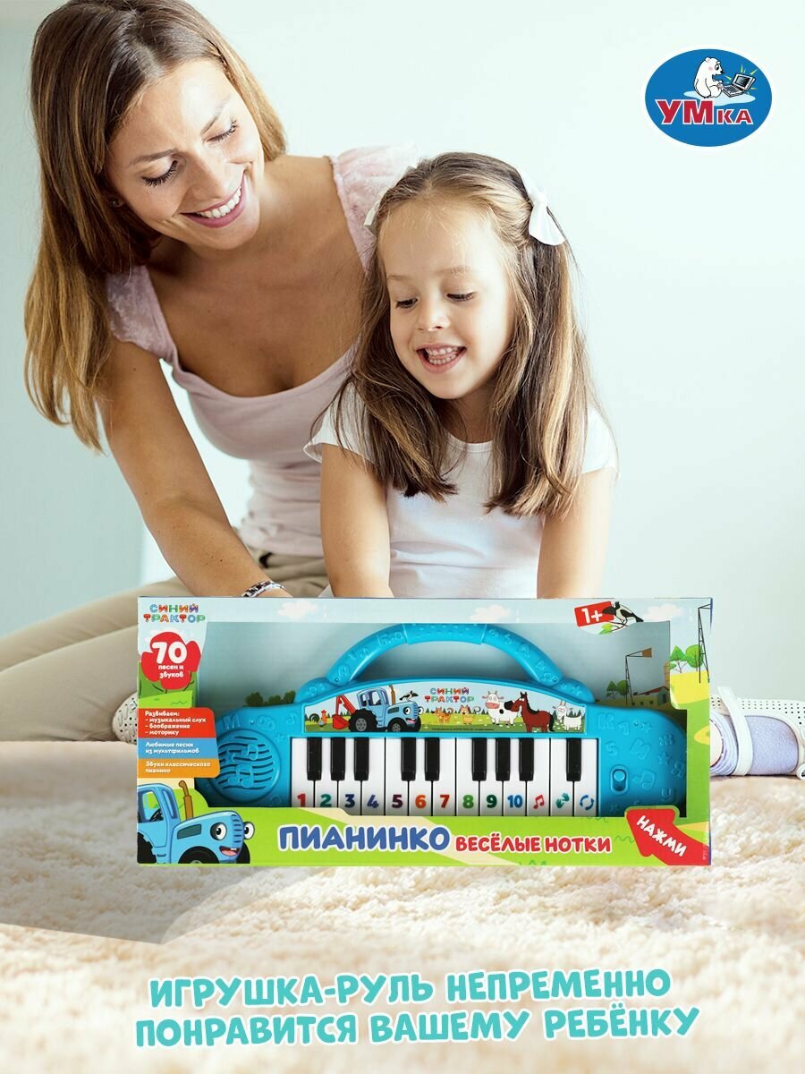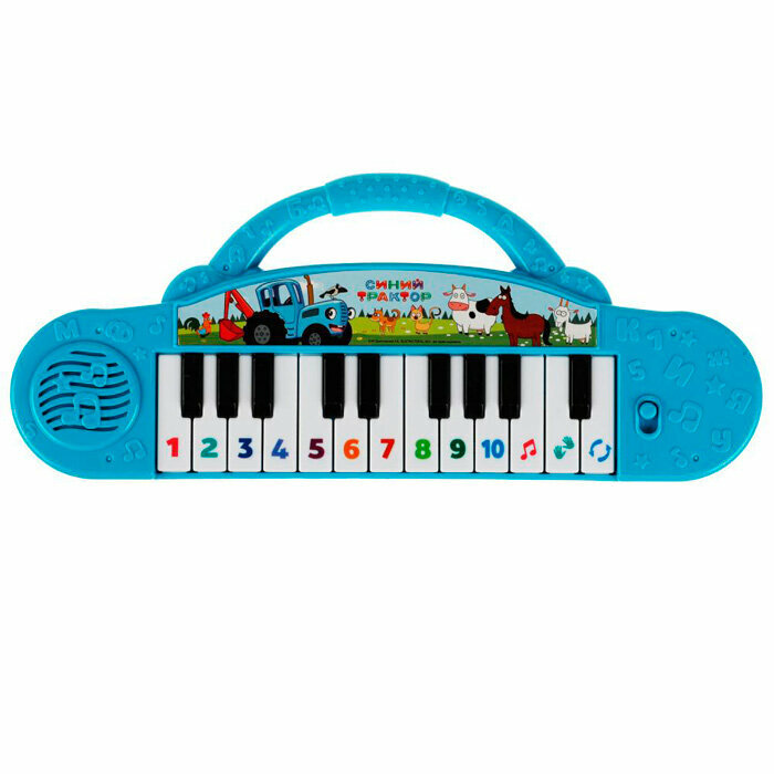 Музыкальное электропианино Синий трактор. Весёлые нотки непременно понравится маленькому поклоннику мультсериала про приключения весёлого трактора и будет способствовать развитию его творческих способностей: 70 песен и звуков, классическое пианино. Ребёнок с удовольствием будет нажимать на клавиши пианино и слушать весёлые песенки из любимого мультфильма. В увлекательной игровой форме малыш легко выучит цифры. Кроме того, с этой игрушкой можно играть и как с пианино. Игра с электропианино развивает: слуховые навыки и музыкальный слух, координацию движений, визуальное восприятие, мелкую моторику.