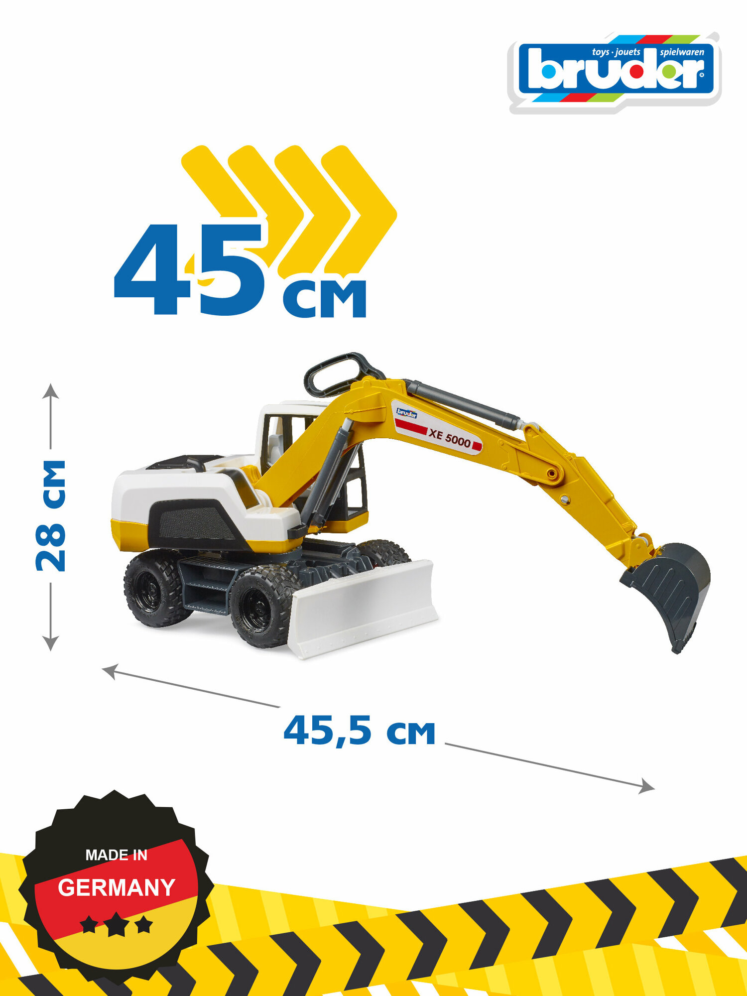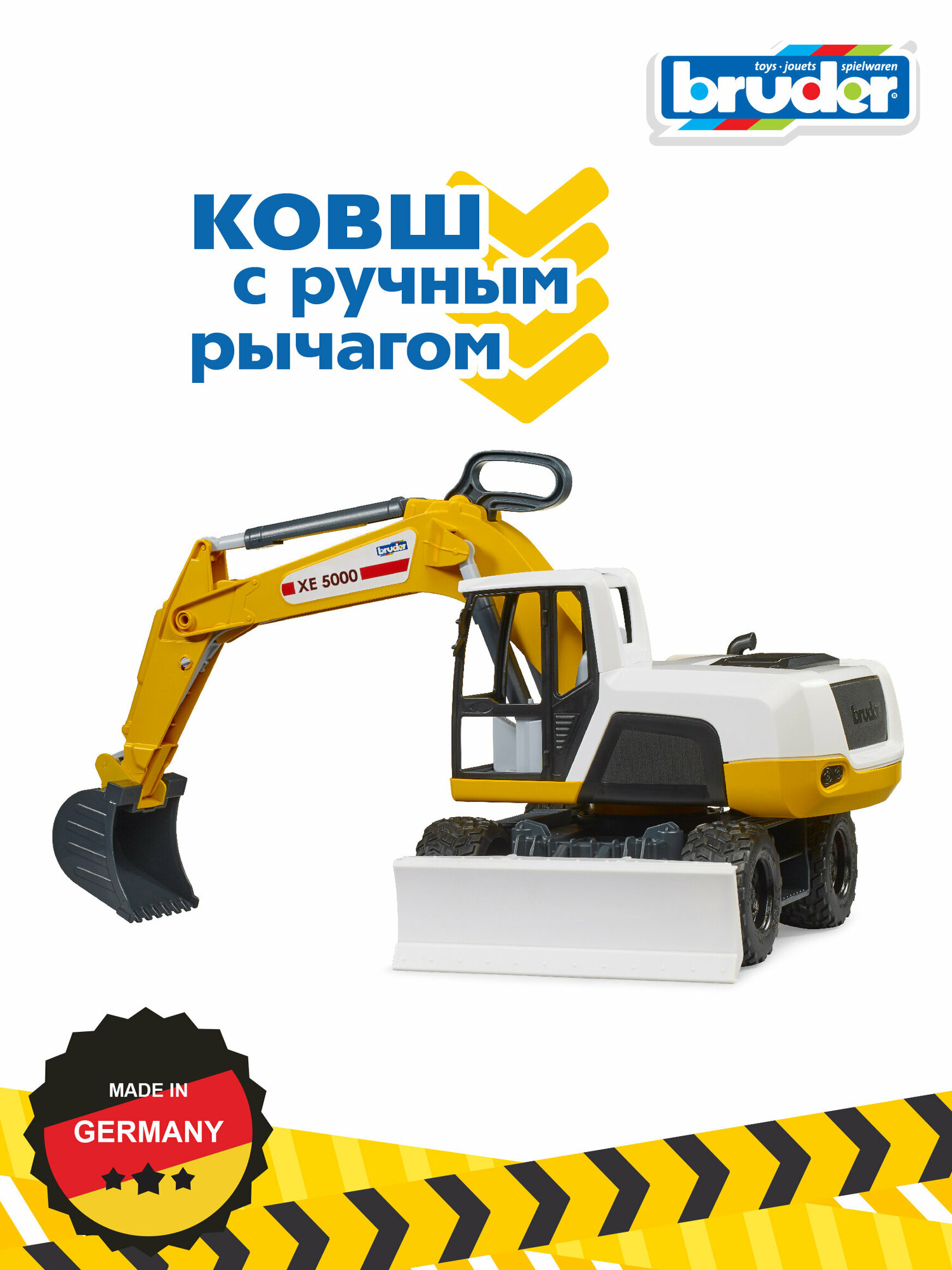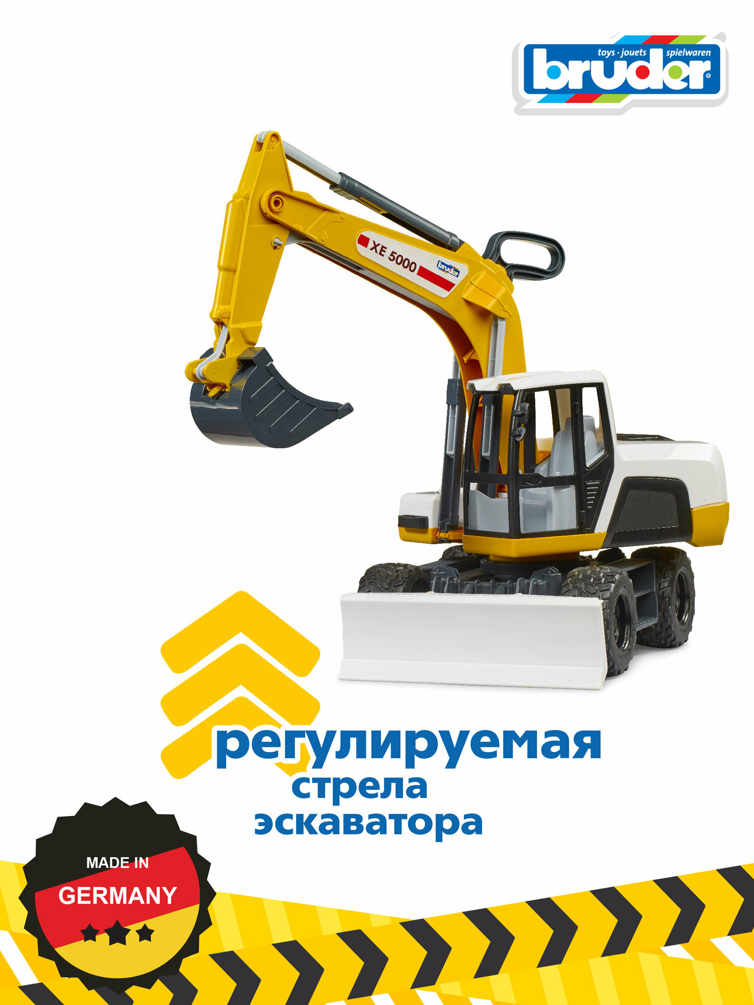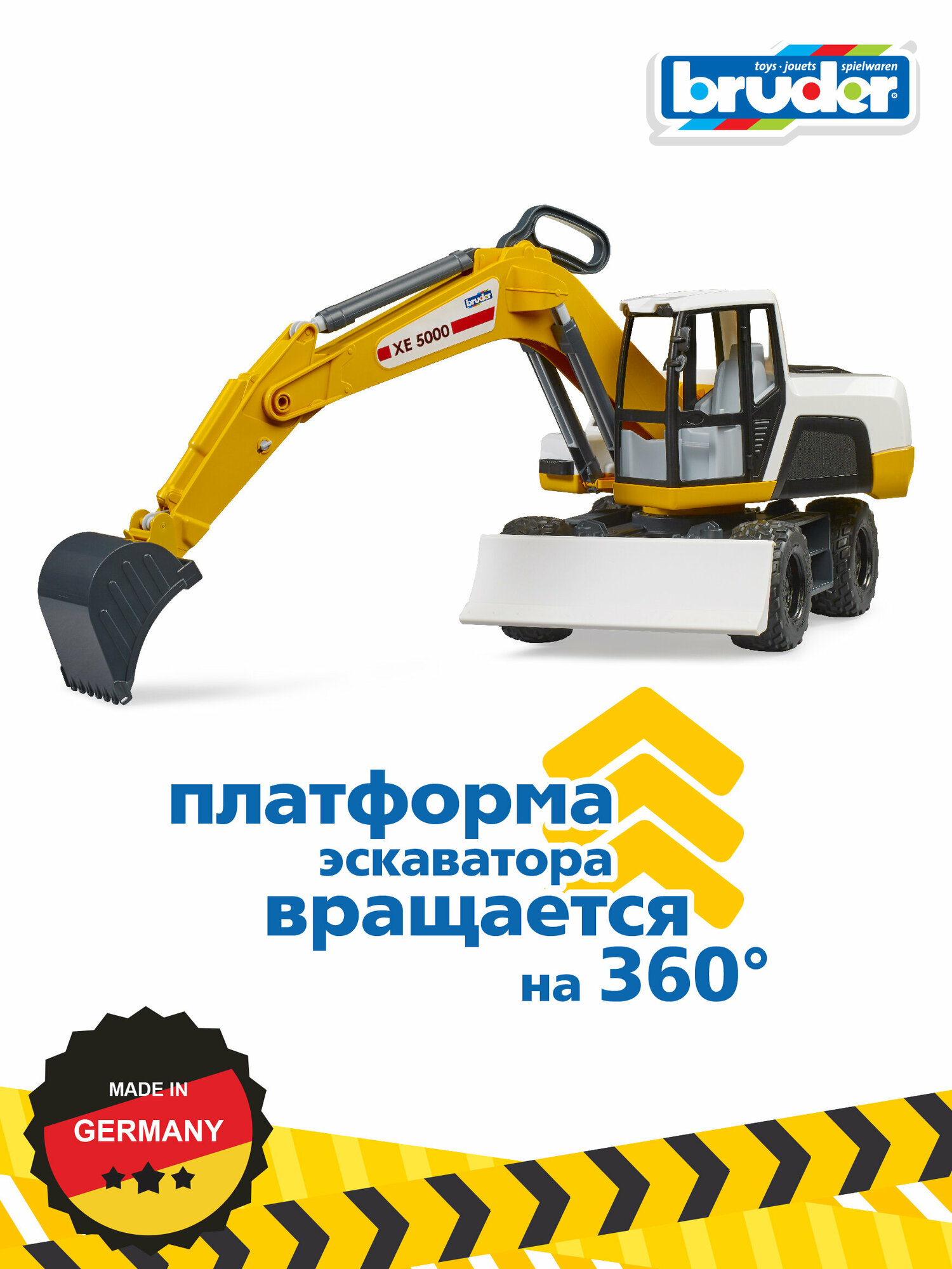 Мир строительных машин BRUDER чрезвычайно популярен, поскольку игрушечные транспортные средства выполнены с высоким уровнем детализации и обладают широкими функциями. К этому успешному сегменту добавился новый мобильный экскаватор BRUDER. Это транспортное средство с продуманным дизайном BRUDER отличается отличными функциями и простотой в обращении. Центральная рукоятка может поднимать и опускать всю рукоятку экскаватора и перемещать ковш. С этим экскаватором также весело играть в песочнице. Корпус экскаватора можно поворачивать на 360 градусов, а большая мощная лопата регулируется по высоте. Эта игрушка станет настоящим хитом даже для детей младшего возраста.