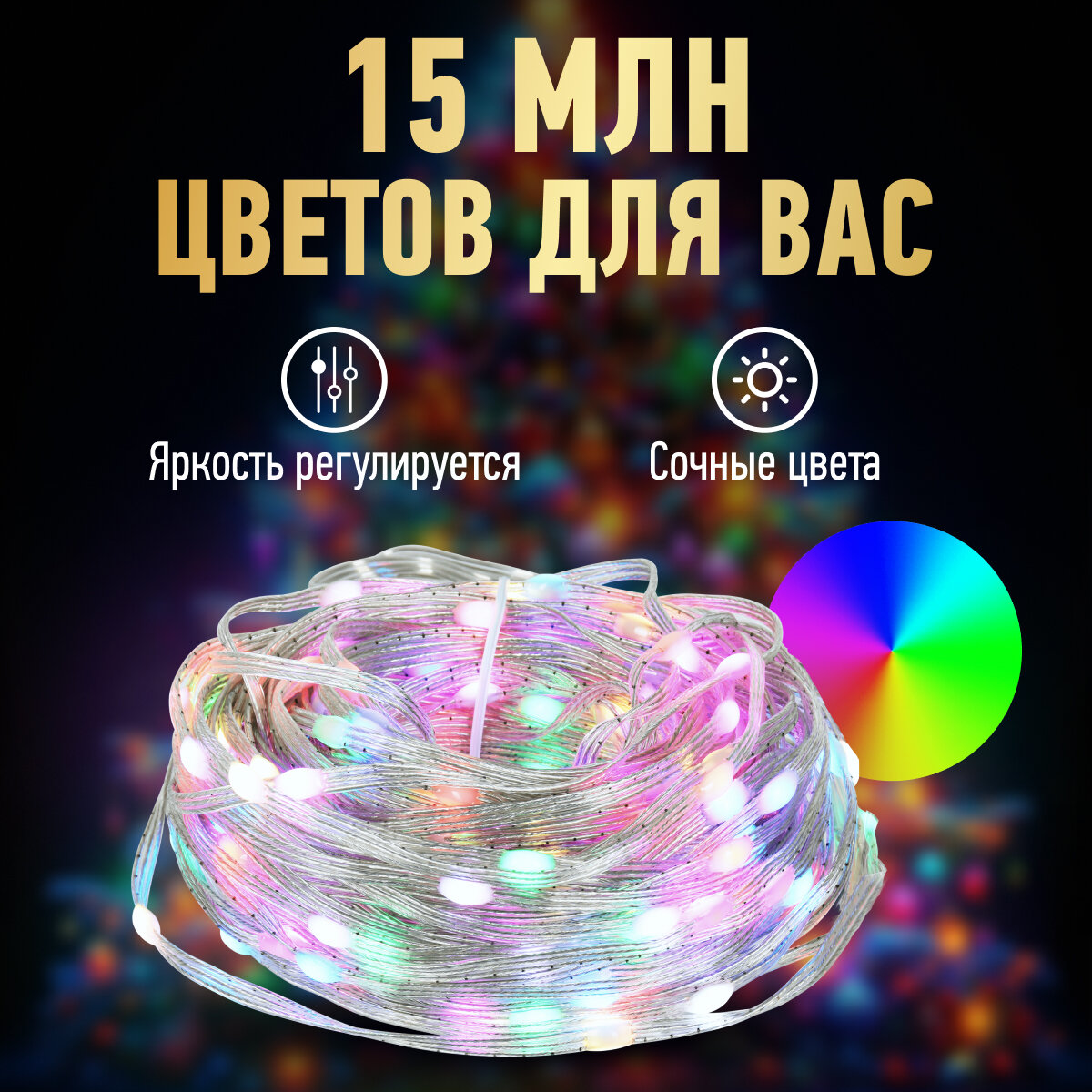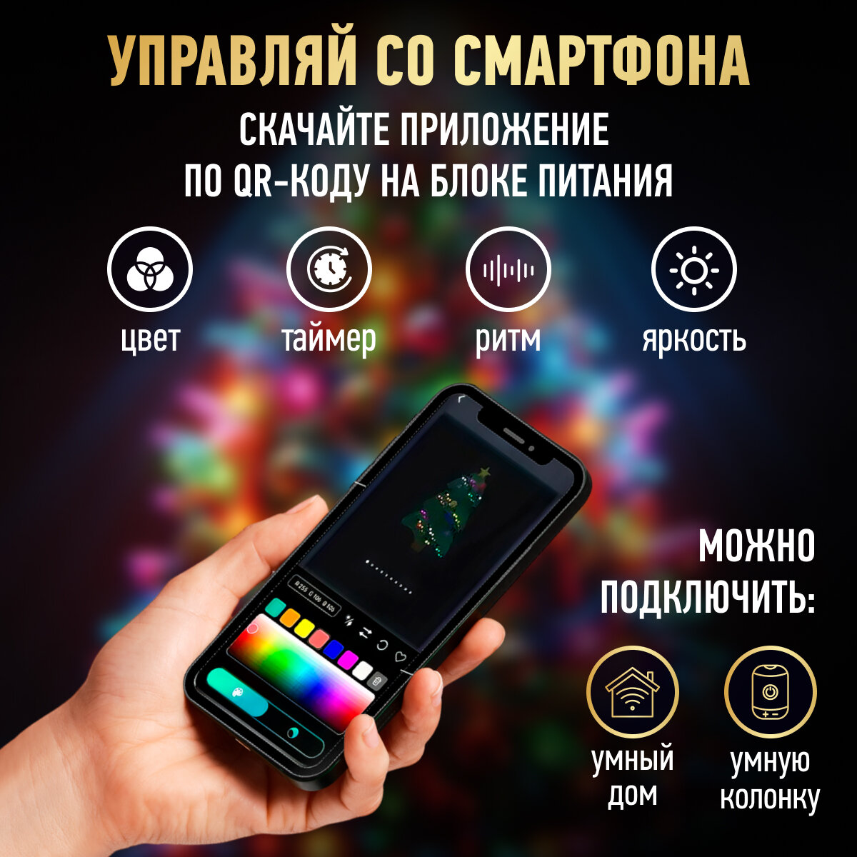 Умная гирлянда управляется с помощью специального приложения на мобильном устройстве или с помощью пульта дистанционного управления(входит в комплект). Питанием от USB. Длина гирлянды 20 м, длина провода 3 м, количество светодиодов 200. Цвет свечения RGB, цвет провода прозрачный. Степень защиты IP 20. Мощность 8 W. Использовать при комнатной температуре. Срок службы 25 000 часов.Электрогирлянды "Нить" предназначены для декорирования жилых и торговых помещений (елок, декоративных растений, предметов интерьера, колонн и других архитектурных элементов). Использовать внутри помещений.