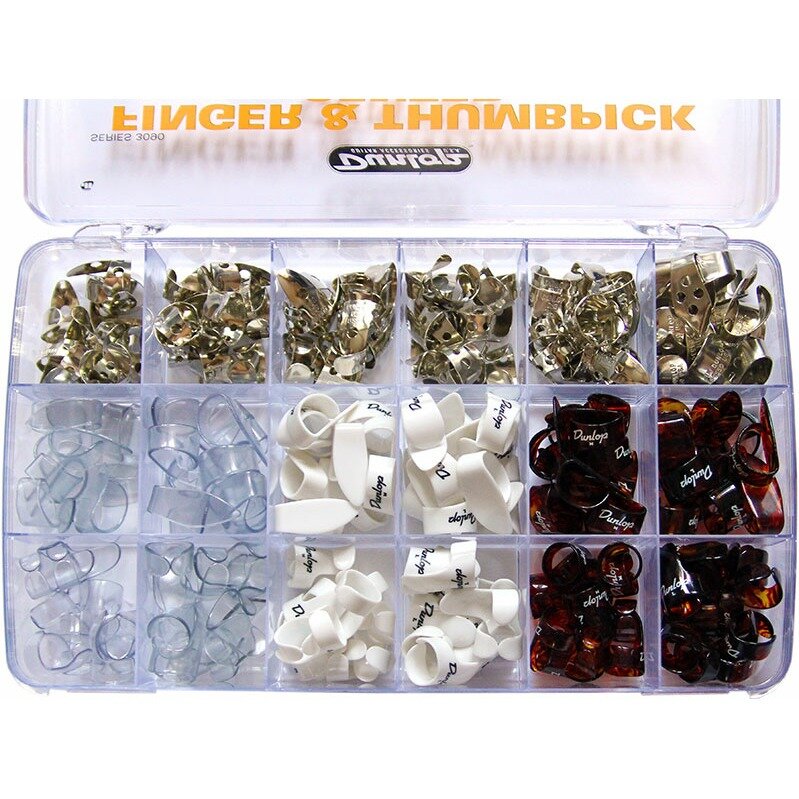 3090 Коробка медиаторов на палец и большой палец, 216шт, Dunlop 216 медиаторов, по 12 штук каждого вида (кроме нейзильберовых): Медиаторы на палец: 33R Нейзильбер 9011 Белые средние 9021 Белые большие 9032 Прозрачные “D” средние 9033 Прозрачные “D” большие 9010 Средние 9020 Большие Медиаторы на большой палец: 3040T Нейзильбер .025” 9002 Белые средние 9003 Белые большие 9035 Прозрачные “D” средние 9036 Прозрачные “D” большие 9022 Средние 9023 Большие
