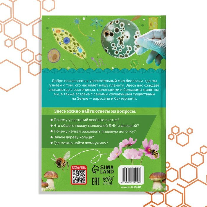 Книга «Биология для детей» станет проводником для ребёнка в увлекательный мир биологии, где мы узнаем о том, кто населяет нашу планету. В этой книге ребёнок познакомится с растениями, маленькими и большими животными, а также самыми крошечными существами на Земле — вирусами и бактериями.