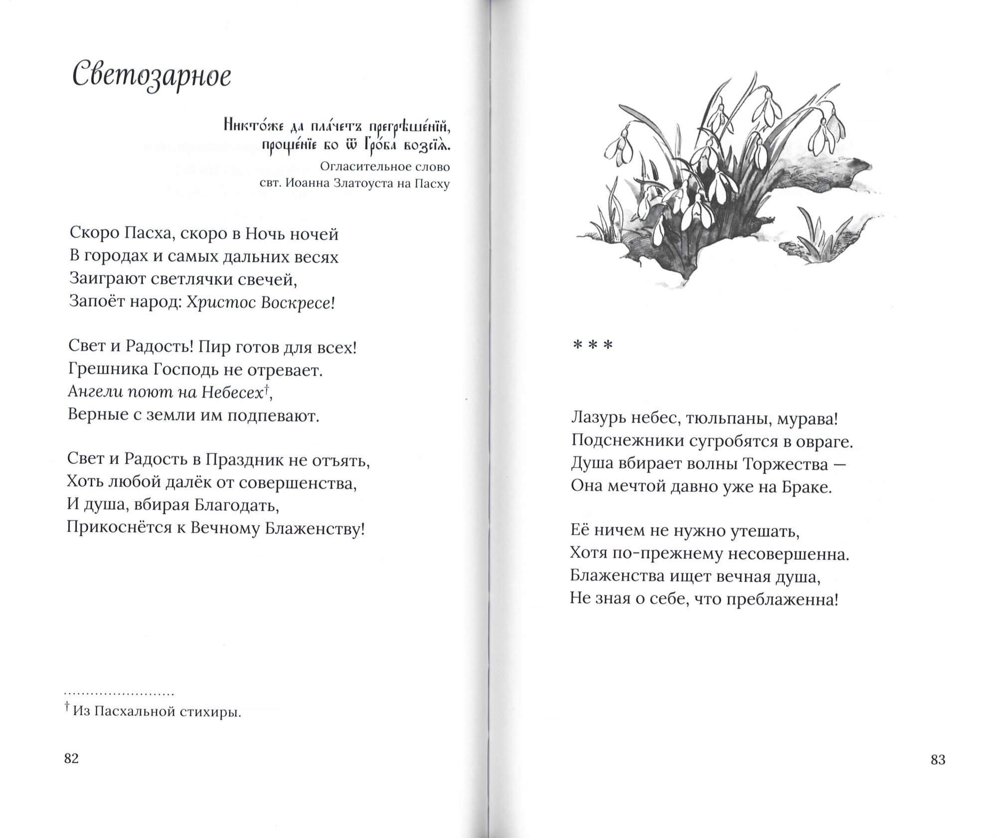 В сборник известного поэта, автора и исполнителя духовных песнопений иеромонаха Романа вошли стихотворения разных лет. Вместе они составляют «поэтический месяцеслов», на страницах которого сменяют друг друга церковные Праздники и времена года.