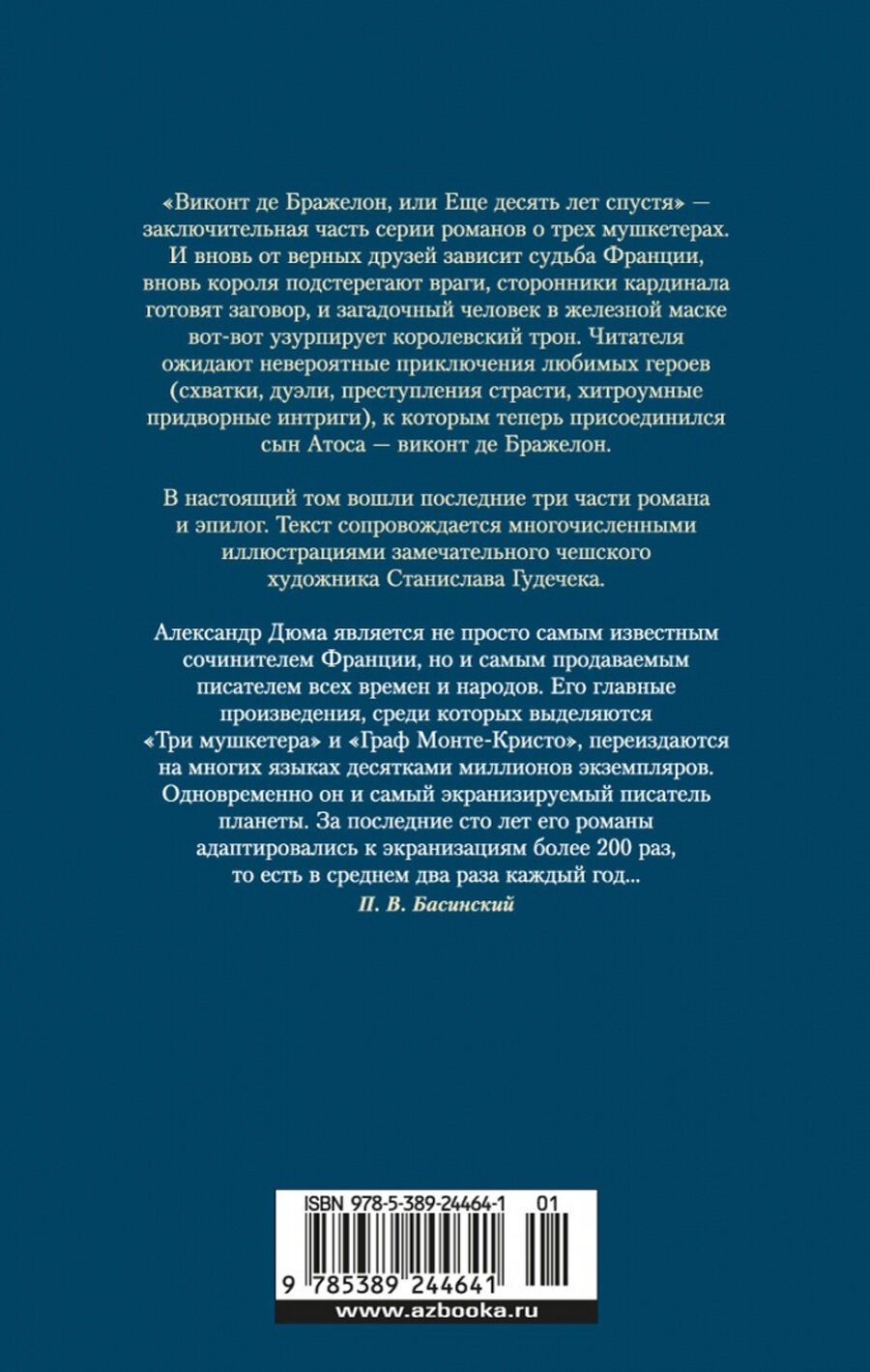 На сегодняшний день товар «Книга: Виконт де Бражелон или Еще десять лет спустя (с илл.) в 2 т. (комплект) (Александр Дюма (отец)); Азбука, 2024» можно купить с кешбеком в 4 магазинах: book24, Буквоед, Читай-город, Яндекс.Маркет