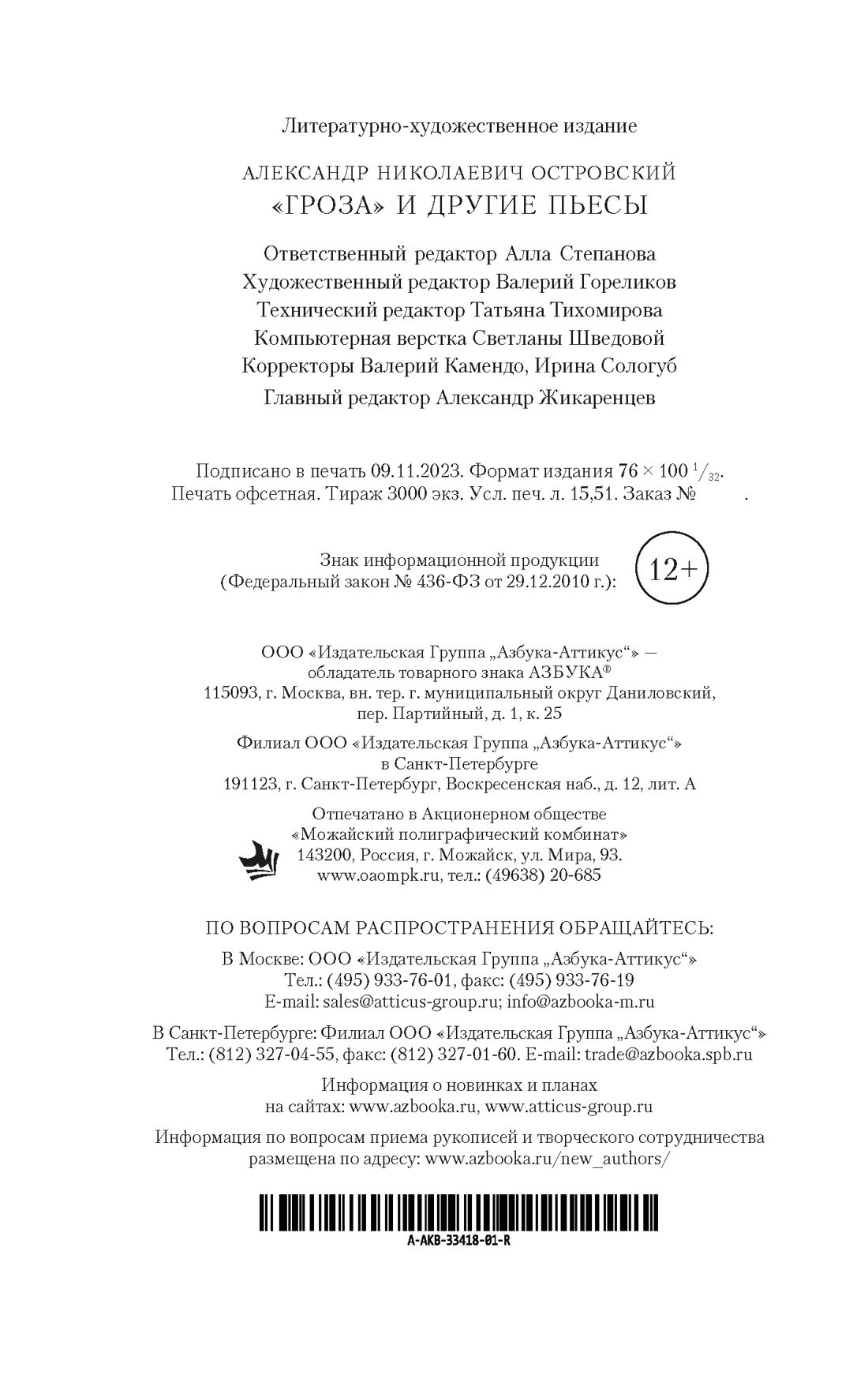Книга: Гроза и другие пьесы (Островский Александр Николаевич); Азбука Издательство, 2023
