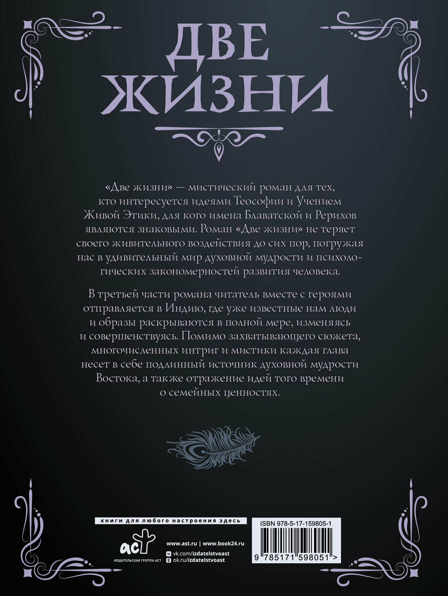 "Две жизни" — мистический роман для тех, кто интересуется идеями Теософии и Учением Живой Этики, для кого имена Блаватской и Рерихов являются знаковыми. Роман "Две жизни" не теряет своего живительного воздействия до сих пор, погружая нас в удивительный мир духовной мудрости и психологических закономерностей развития человека.