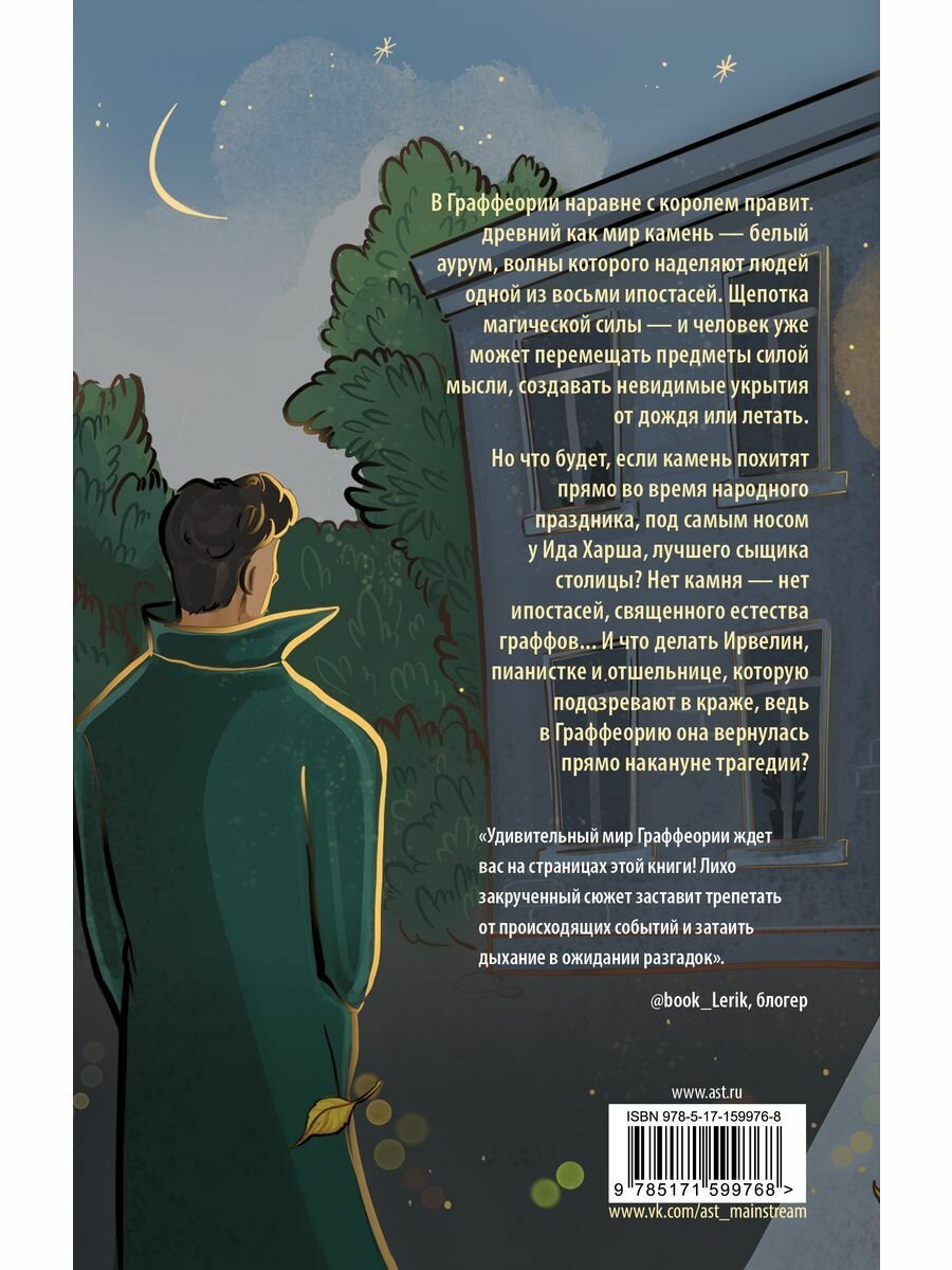 Но что будет, если чудородный белый аурум похитят прямо во время народного праздника, под самым носом у Ида Харша, лучшего сыщика столицы? Камень окажется за пределами страны – не станет ипостасей, священного естества граффов... И что делать Ирвелин, пианистке и отшельнице, которую подозревают в краже, ведь в Граффеорию она вернулась прямо накануне трагедии?