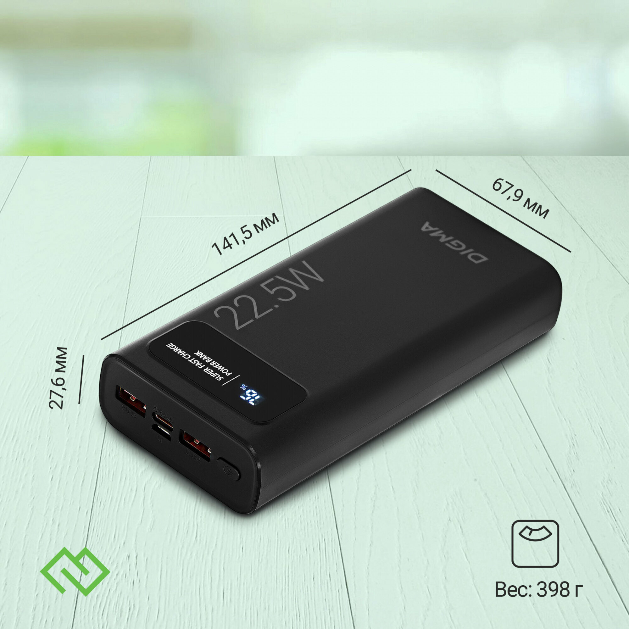 Аккумулятор внешний портативный Digma 20000mAh QC3.0/PD3.0 22.5W 3A 2xUSB-A/USB-C черный DGPF20A