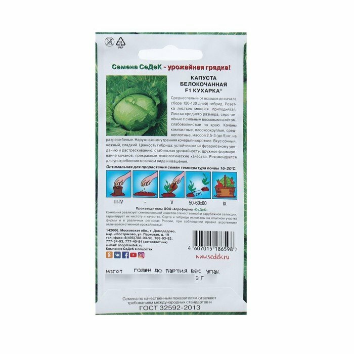 Сервис сравнения цен СкидкаГИД предлагает сравнить цены на товар «Семена СеДеК Капустабелокочанная Кухарка F1»