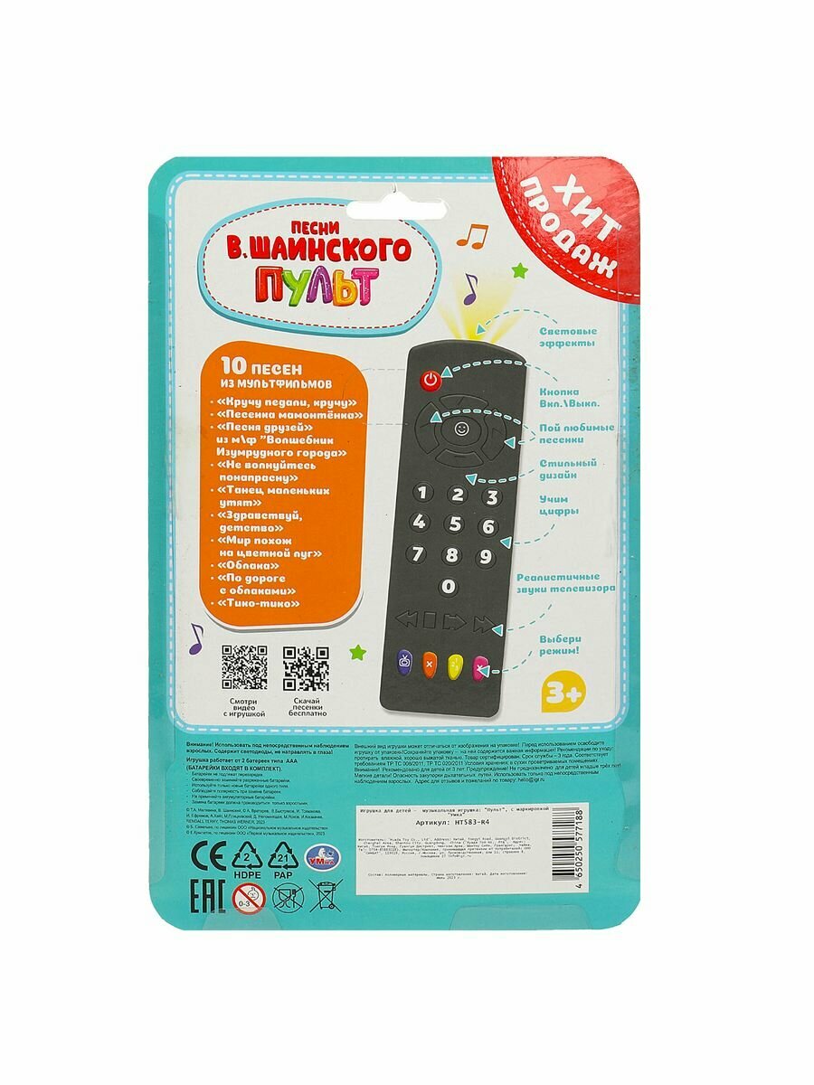 Развивающая игрушка "Сказочник Винни-Пух" ТМ "УМка" станет прекрасным подарком для малыша:-20 песен из м/ф (фрагменты): "Песенка первая", "Лучший подарок", "Утренняя песенка", "Вот горшок пустой", "День рождения", "Чунга-Чанга", "Песенка Львенка и Черепахи", "Голубой вагон", "Антошка", "Веселая карусель" и др.-18 стихов и загадок про цифры-5 музыкальных сказок: "Колобок", "Курочка Ряба", "Репка", "Теремок", "Три медведя"Интересная игрушка в виде Винни-Пуха, забавного персонажа одноименного мультфильма, непременно понравится вашему ребенку. Малыш с удовольствием будет нажимать на цветные фигурные кнопки и слушать увлекательные музыкальные сказки, песни из любимых мультфильмов, стихи, а также отгадывать загадки. В такой увлекательной игровой форме ребенок с легкостью сможет выучить цифры. Музыкальная игрушка развивает слуховое восприятие и музыкальный слух, тактильные навыки, визуальное восприятие, моторику, память.Размер игрушки: 15 х 18 х 12 см. Материал: пластмасса, элементы из металла.Работает от 3-х батареек типа ААА (в комплекте).Соответствует требованиям безопасности продукции.Рекомендовано детям от 1 года.