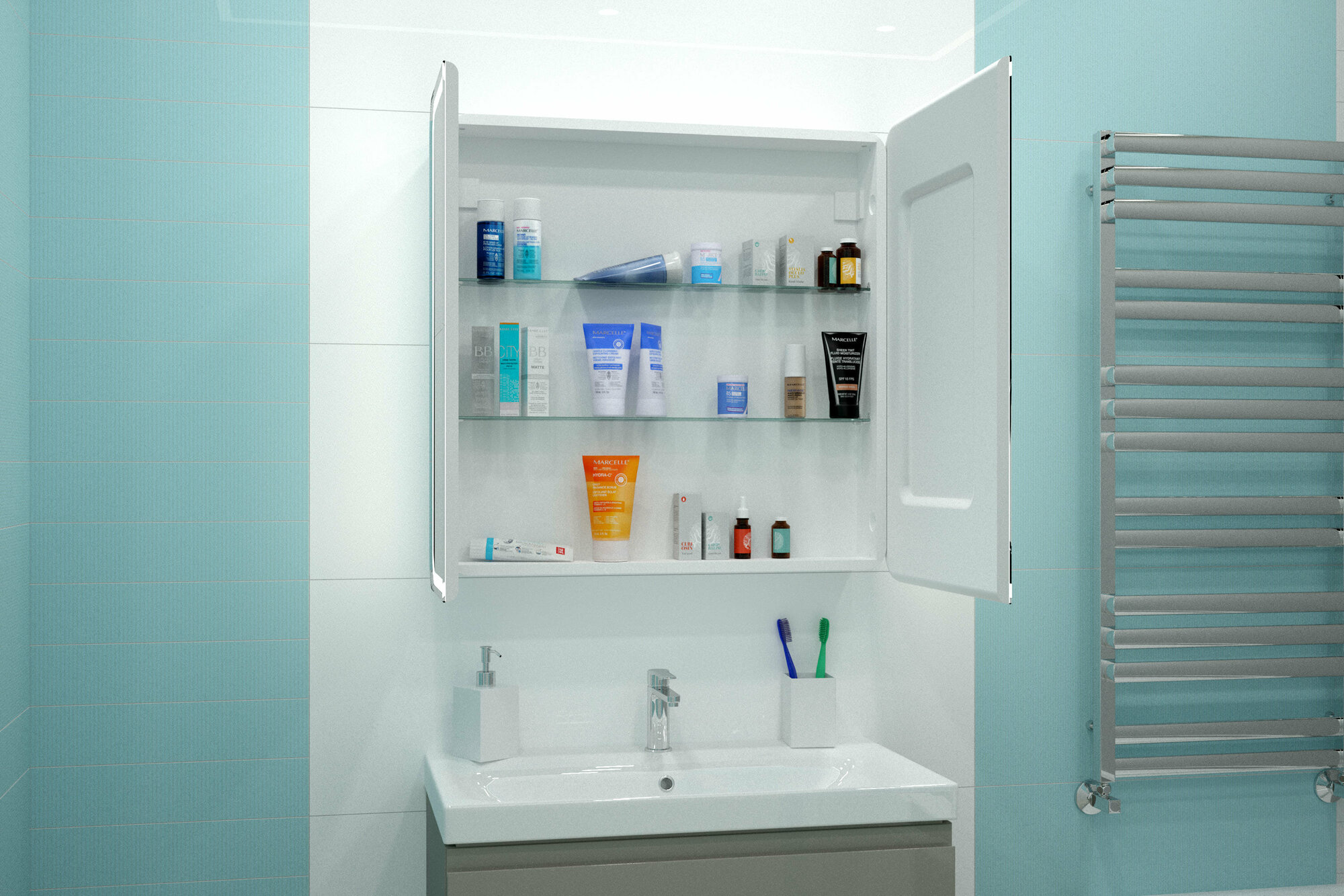 | Вид зеркального шкафа | шкафчик с зеркальными дверцами |