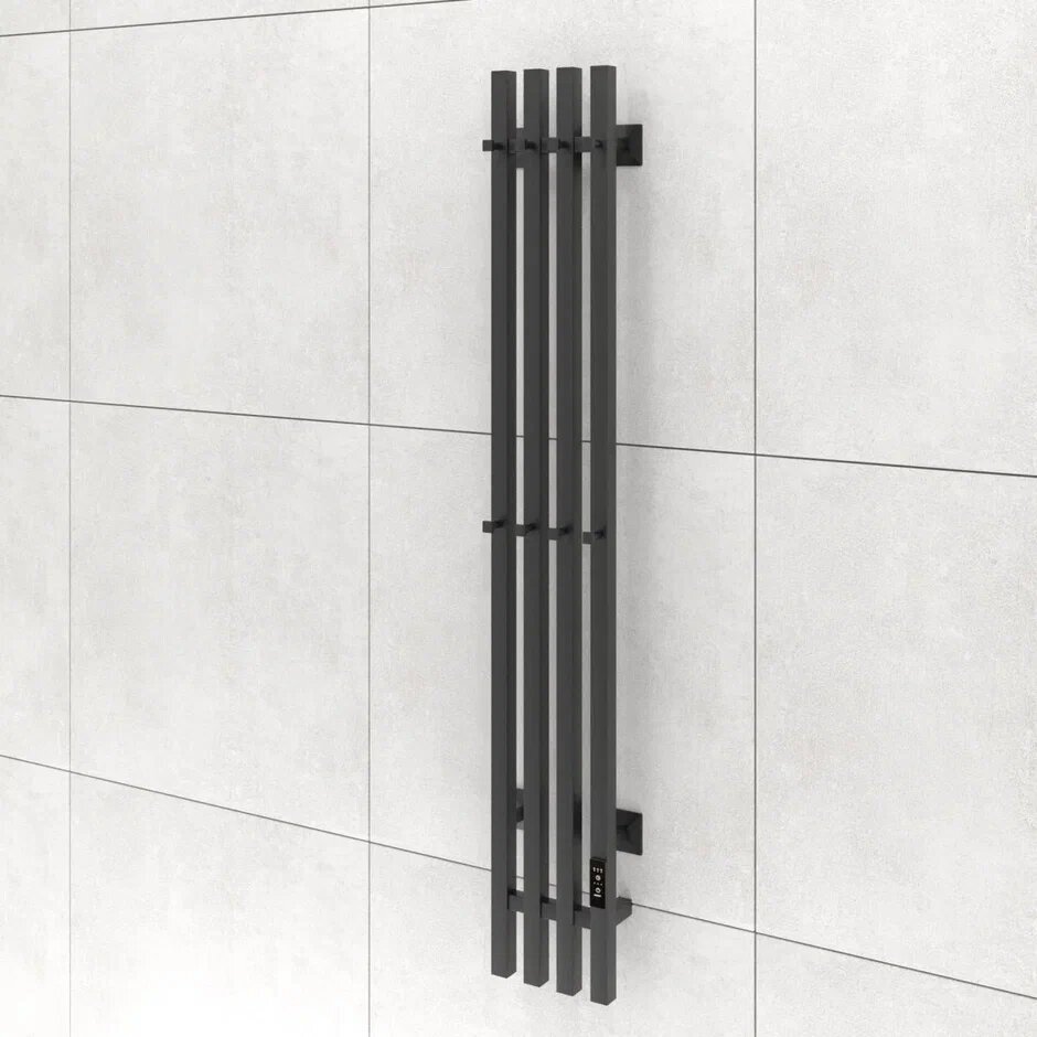 Отличается низким энергопотреблением, компактными размерами и стильным современным видом — станет неотъемлемой частью интерьера ванной комнаты. Товар изготовлен с применением технологии «сухой ТЭН» - нагревательным элементом в нем является нагревательный кабель, разогревается до максимума за 20-30 минут.Уникальная конструкция позволяет осуществить подключение к электросети, где бы ни находилась розетка - справа или слева! Коробка под скрытый монтаж идет в комплекте с изделием и окрашена в цвет корпуса! Что позволяет осуществить современный безопасный монтаж полотенцесушителя на стене и избавиться от свисающих проводов. Если же у вас нет возможности подключить изделие скрытым способом - Кабель с вилкой для подключения изделия через электрическую розетку тоже в комплекте. Кабель, входящий в комплект, имеет цвет: у черного полотенцесушителя — черный, у цвета хром — белый, у белого — белый. Количество перекладин зависит от высоты полотенцесушителя, все перекладины полноценно прогреваются, их удаленность от стены позволяет без труда повесить банное полотенце. цвет черный: полотенцесушитель имеет надежное покрытие современной полимерной краской, которая устойчива к влажности и высоким температурам, обладает наивысшими показателями цветоустойчивости и экологичности. Процесс окрашивания происходит в заводских условиях, где изделие проходит двойной контроль отдела качества. На корпусе есть блок управления с 2-мя кнопками и 2-мя рядами светодиодов, которые сигнализируют о выбранном режиме: -кнопка включения/выключения регулирует мощность работы прибора — 3 уровня нагрева (низкий, средний, максимальный) - для отключения/включения прибора просто удерживайте кнопку 3 секунды - кнопка таймера, кратковременным нажатием активирует режим отключения прибора по истечении 2, 4 или 6 часов.Комплектация: полотенцесушитель с блоком управления, крепежи телескопические, модуль для скрытого подключения - 2 штуки слева и справа, кабель с вилкой, набор клеммников и саморезов, шестигранник, гарантийный талон (полиэтиленовый пакет, картонная коробка).