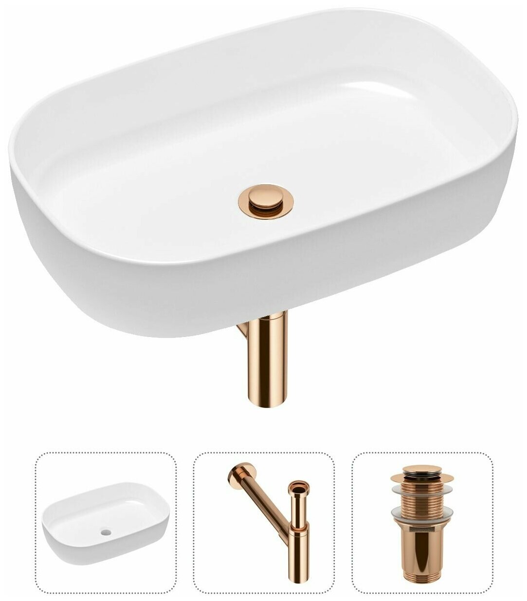 Комплект 3 в 1 Lavinia Boho Bathroom Sink 21520089: накладная фарфоровая раковина 54 см металлическ