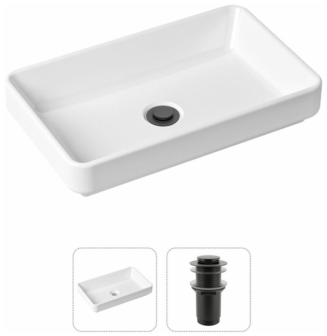 Комплект 2 в 1 Lavinia Boho Bathroom Sink : накладная фарфоровая раковина 55 см донный клапан 21520810
