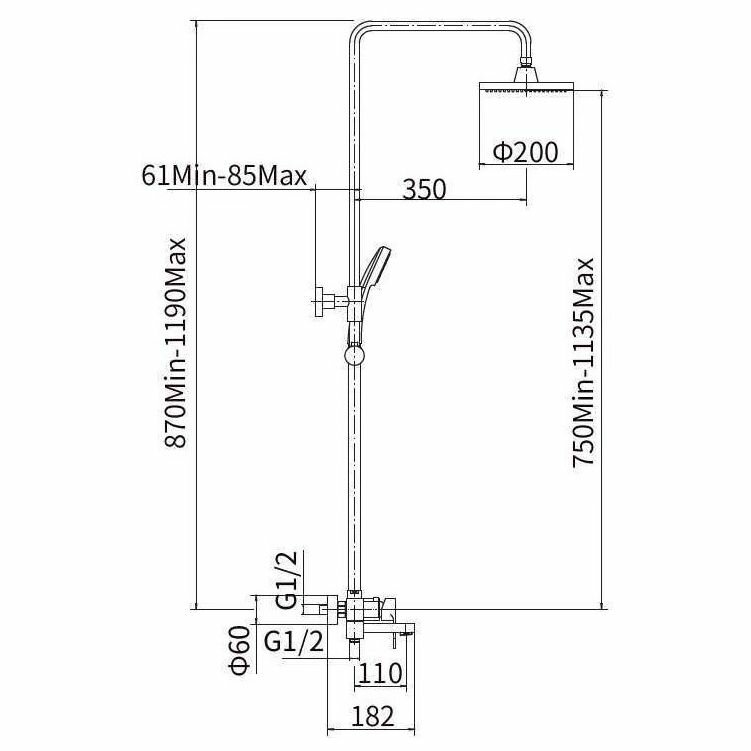 | Габариты верхнего душа | 200 |