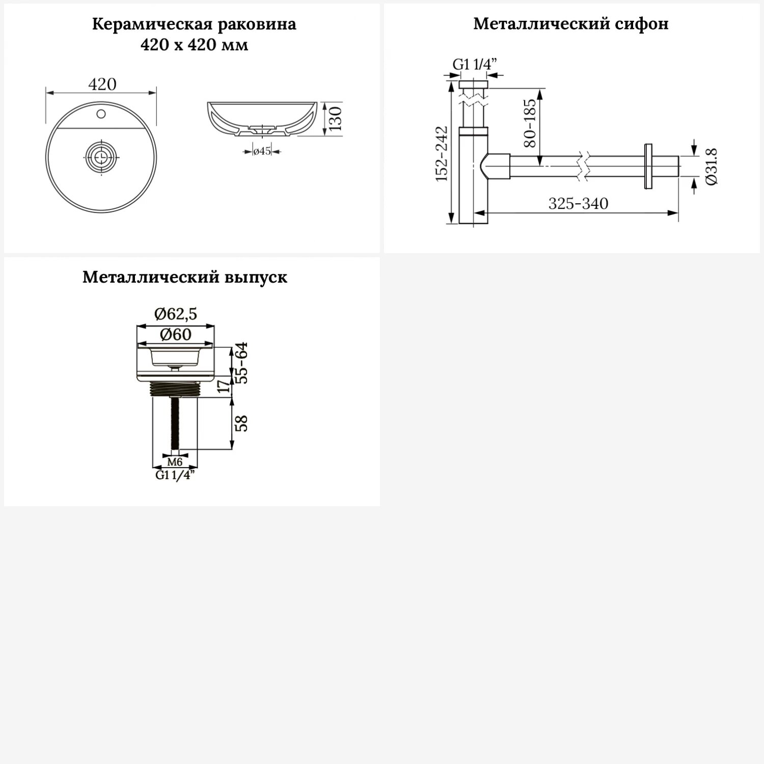 | Диаметр слива, см | 4.5 |