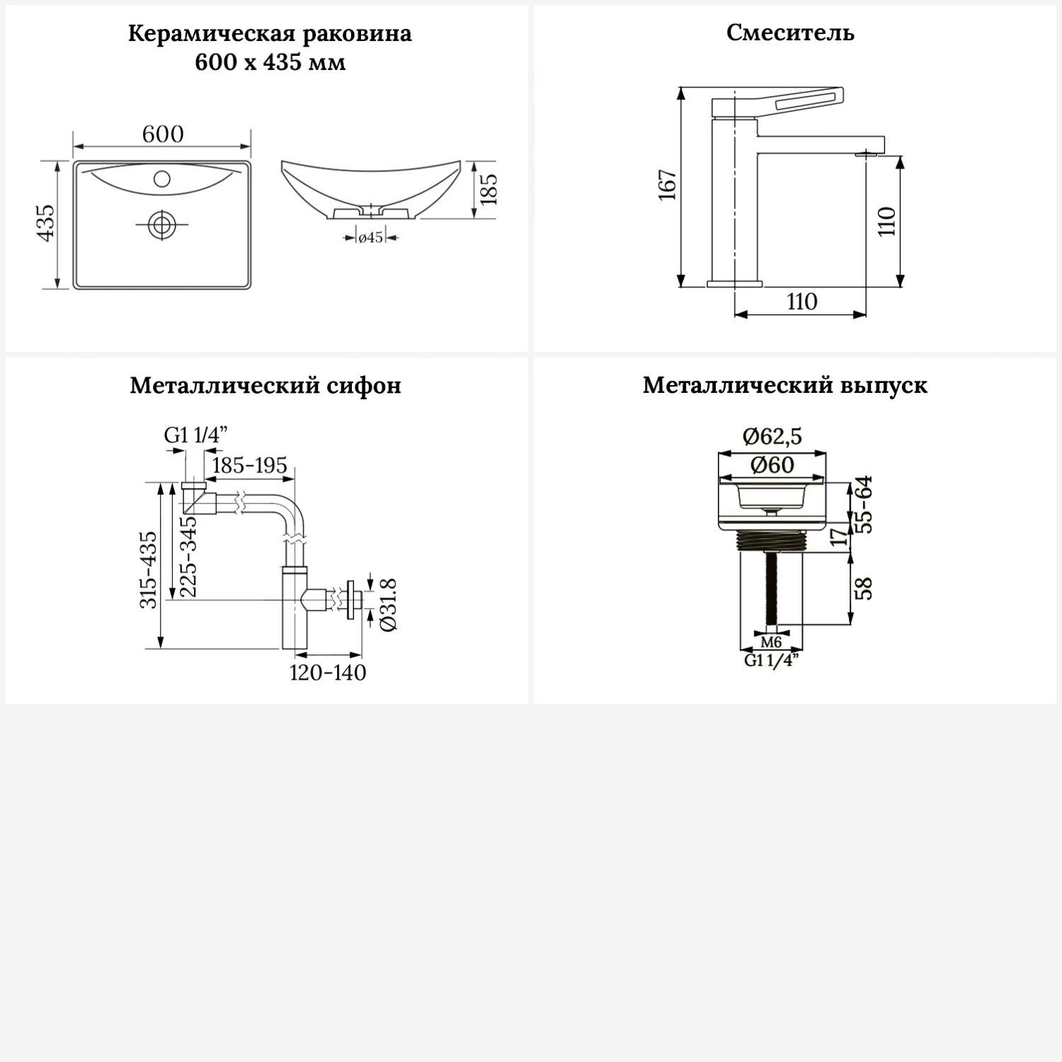 Раковина для ванной Wellsee Cerulean в наборе 4 в 1 201003050