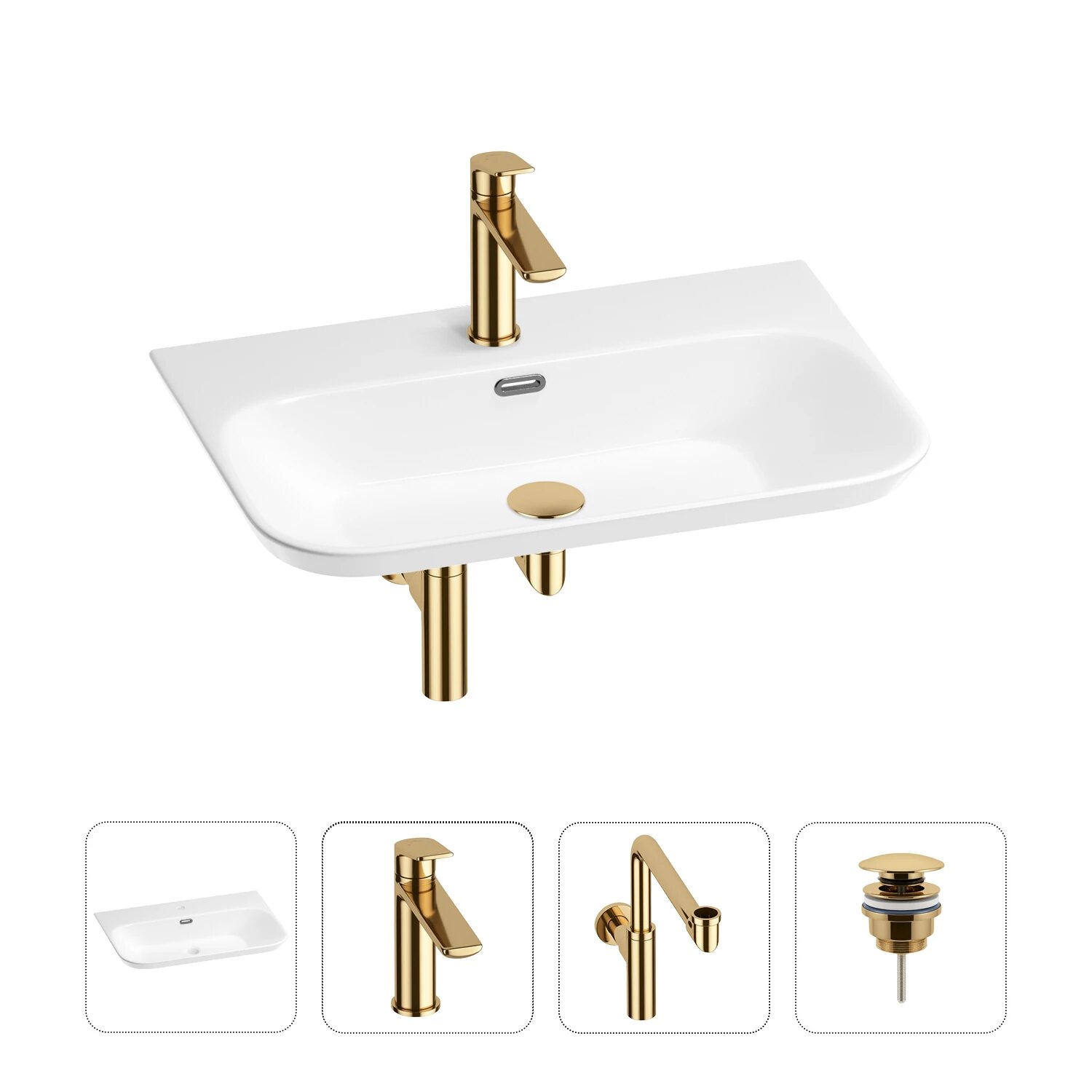 | Дополнительная информация | раковина белого глянцевого цвета, смеситель, сифон, донный клапан (цвет набора золото) |