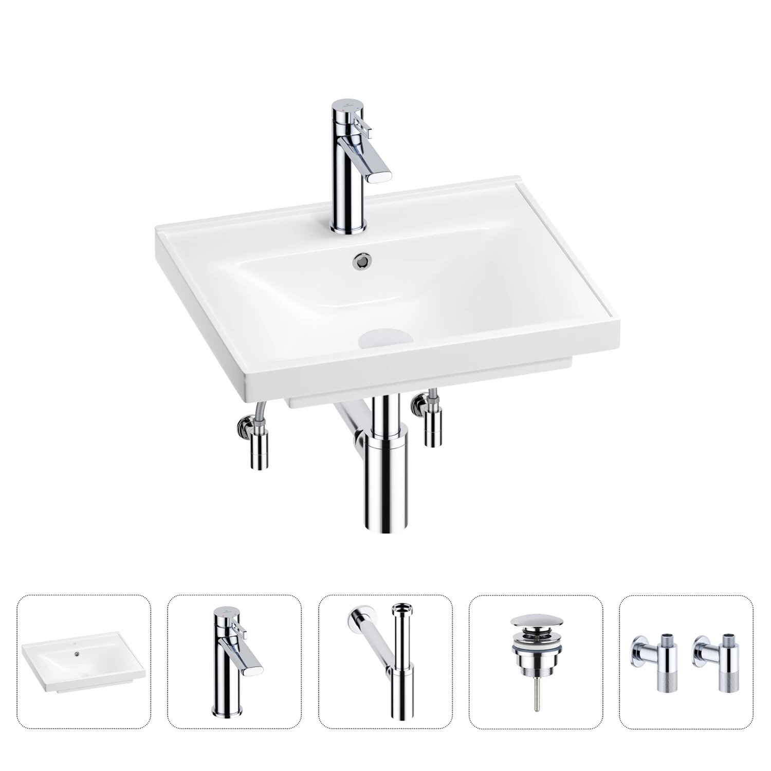 | Дополнительная информация | раковина белого глянцевого цвета, смеситель, сифон, донный клапан, угловые вентили (цвет набора хром) |
