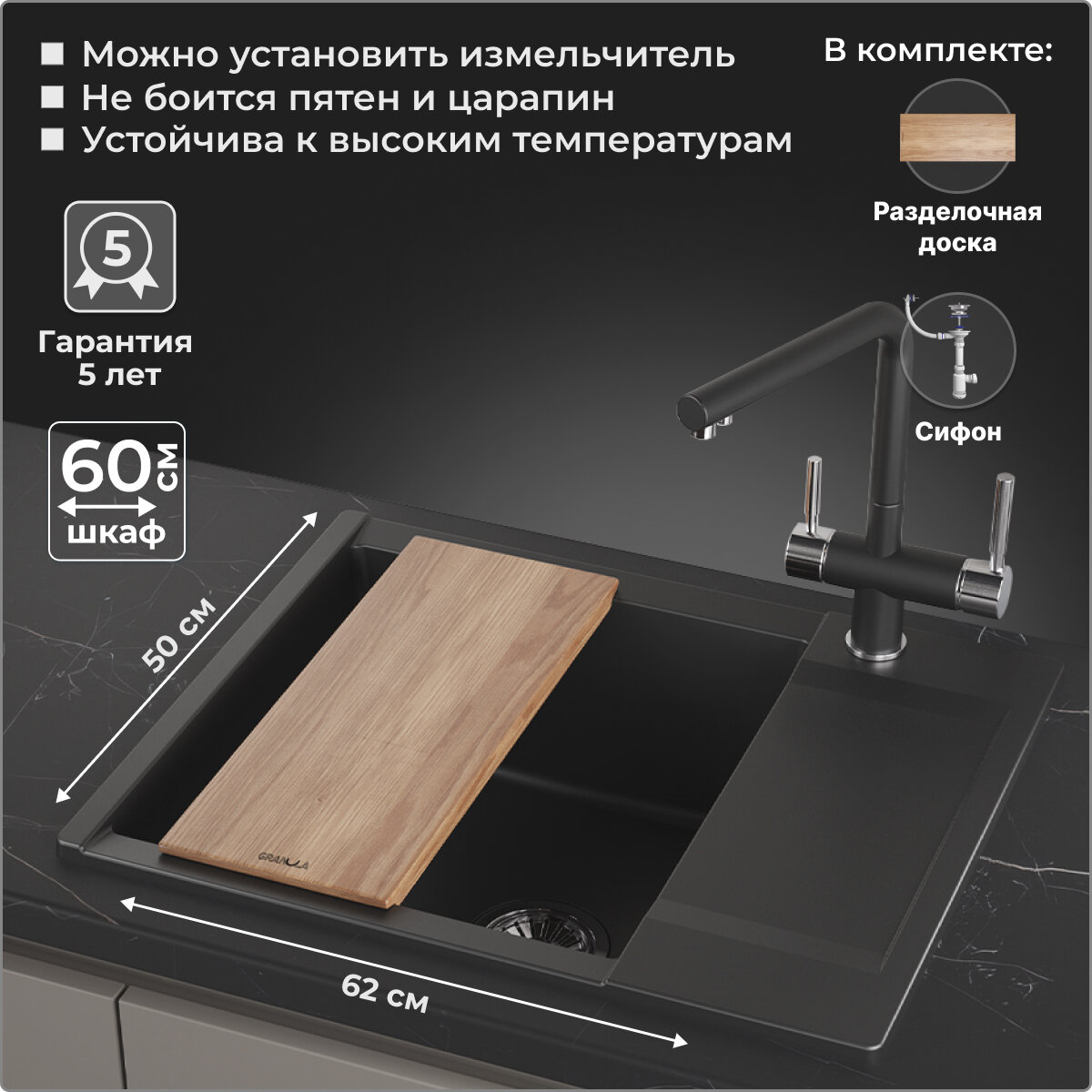 | Дополнительная комплектация | разделочная доска; сифон |