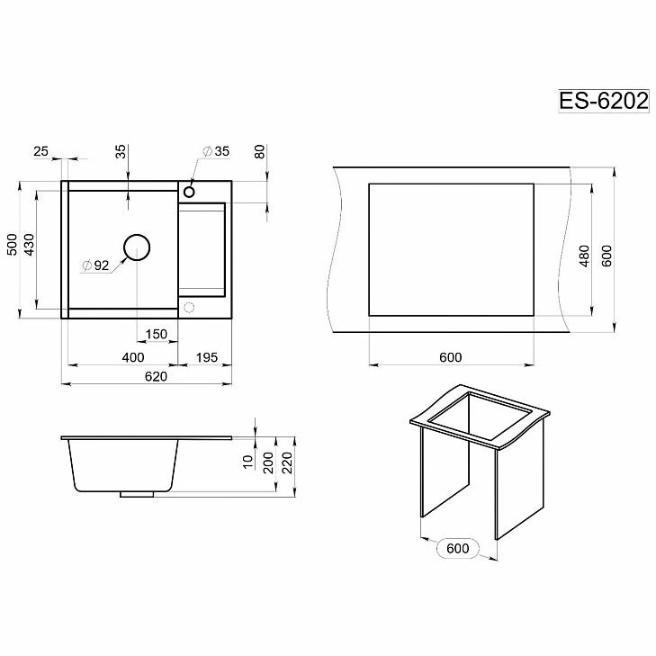 Мойка кухонная Granula Estetica 6202 черный 6202, ЧЁРНЫЙ