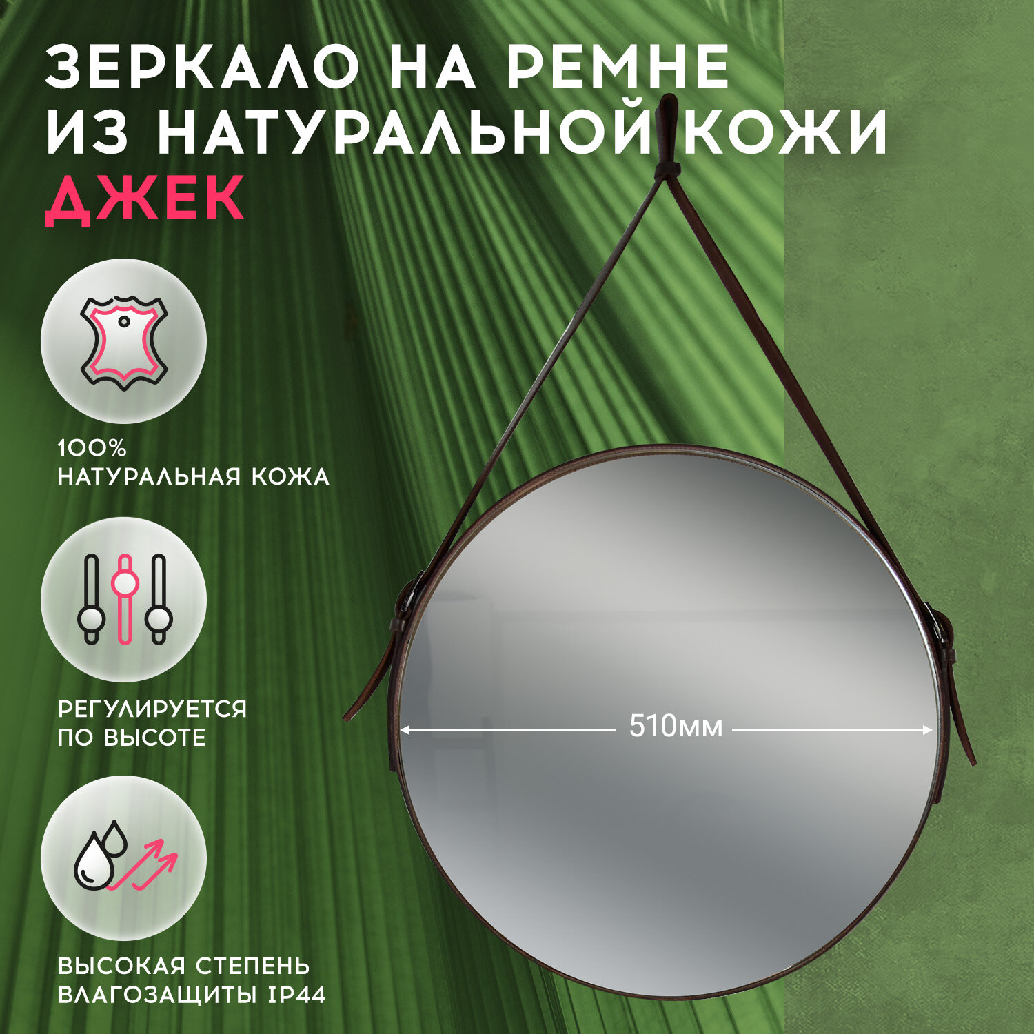 Зеркало Джек d510 DORATIZ 2711.903, кожанный ремень. Зеркало Джек с ремнем из натуральной кожи - это находка для оформления стильной ванной комнаты. Модель сделана из стекла высшего качества M0 (влагостойкое, минимальные оптические искажения).