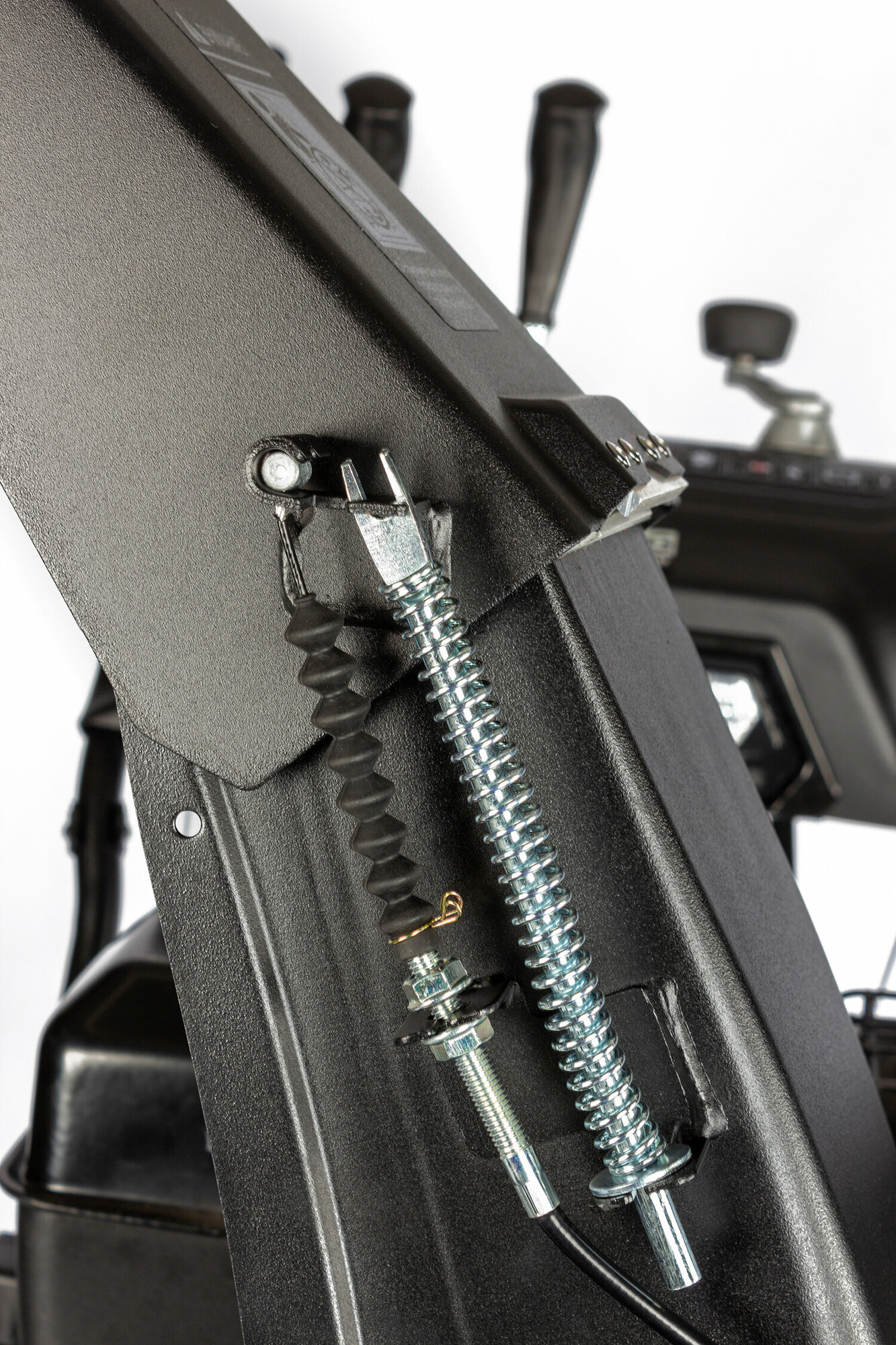 - Набор скоростей: 6 вперед, 2 назад - дает возможность не только установить удобную оператору скорость движения, но и отрегулировать оптимальное усилие и нагрузку на двигатель при уборке разного по плотности, структуре и толщине снега