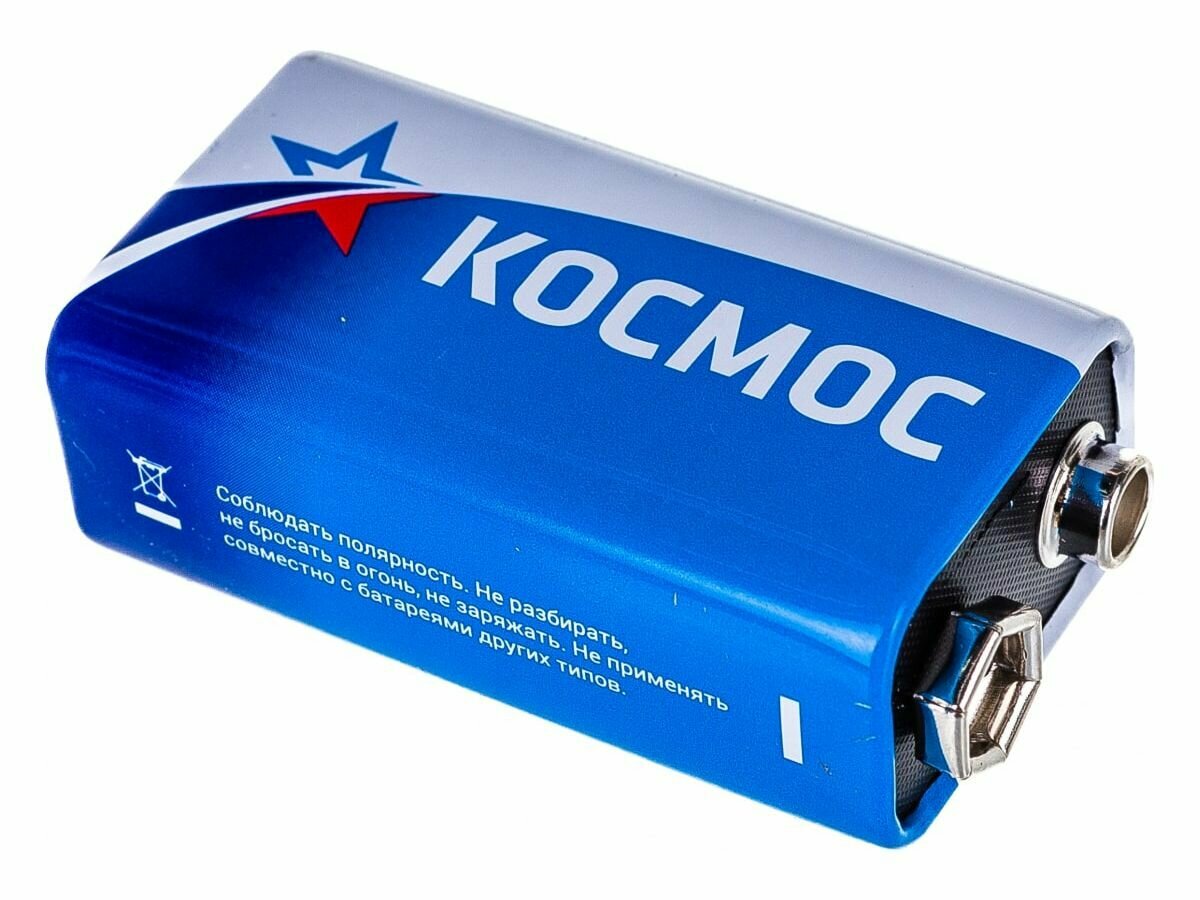 Солевые (цинк-углеродные) батарейки Космос – в упаковке 1 шт. Типоразмер батареек 9В также называют «крона» (на приборах-потребителях может обозначаться как 6LR61, 6F22, PP3). Защищены от протечек по технологии Super Heavy Duty. Толстый корпус батарейки легирован против коррозии. Важно - солевые батарейки предназначены для маломощных устройств, например пульт или часы - для игрушек и более мощных устройств лучше выбрать щелочные