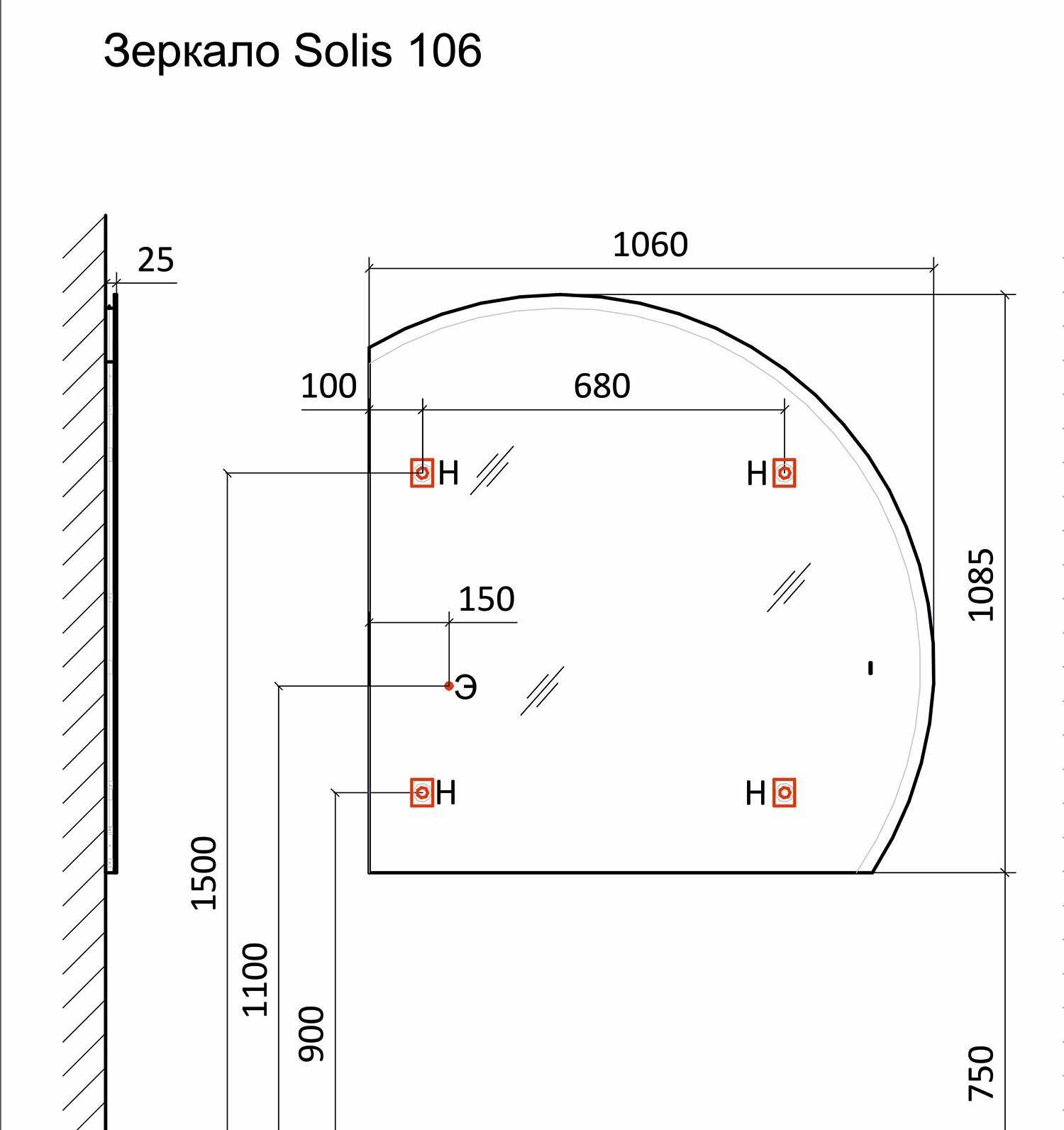 | Оснащение зеркала | С подсветкой, с выключателем |