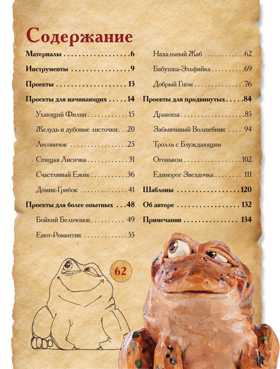Очаровательные лесные звери, своенравные драконы и единороги, мудрые волшебники и эльфы… Украсьте дом или порадуйте близких запоминающимся подарком! Все, что вам нужно,— это минимальный набор инструментов и материалов, а также желание раскрыть для себя безграничные возможности резьбы по дереву.