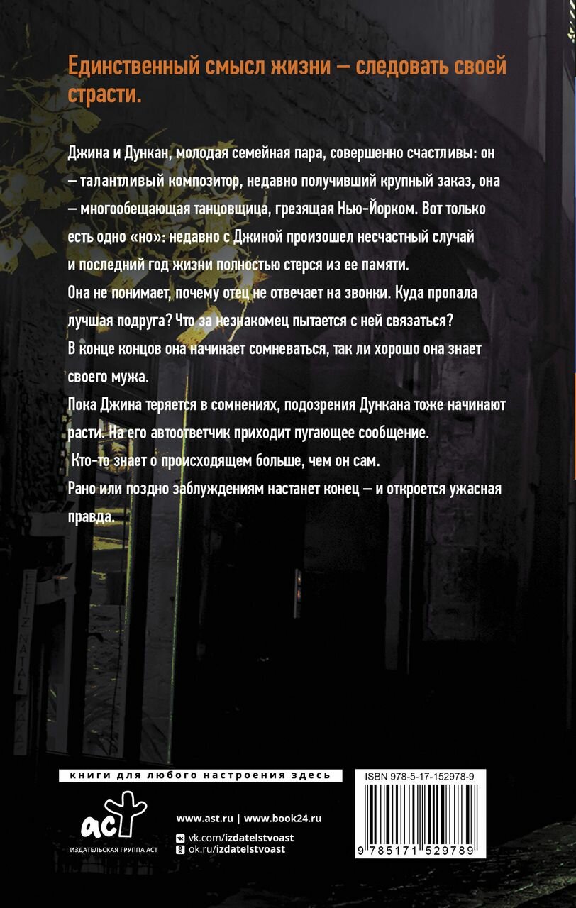 Единственный смысл жизни – следовать своей страсти. Джина и Дункан, молодая семейная пара, совершенно счастливы: он – талантливый композитор, недавно получивший крупный заказ, она – многообещающая танцовщица, грезящая Нью-Йорком. Вот только есть одно «но»: недавно с Джиной произошел несчастный случай и последний год жизни полностью стерся из ее памяти. Она не понимает, почему отец не отвечает на звонки. Куда пропала лучшая подруга? Что за незнакомец пытается с ней связаться? В конце концов, она начинает сомневаться, так ли хорошо она знает своего мужа? Пока Джина теряется в сомнениях, подозрения Дункана тоже начинают расти. На его автоответчик приходит пугающее сообщение. Кто-то знает о происходящем больше, чем он сам. Рано или поздно заблуждениям настанет конец – и откроется ужасная правда.