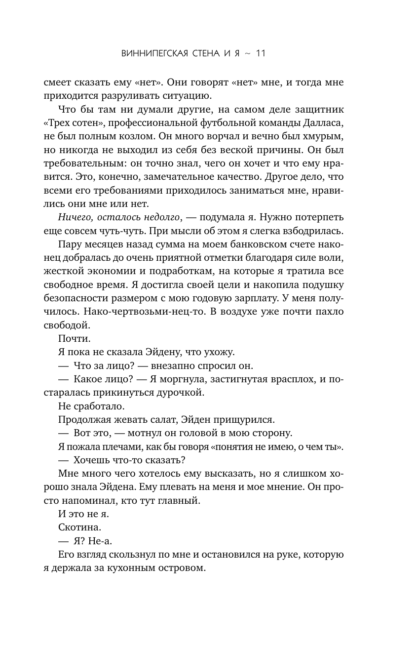 Два года проработав личным ассистентом известного футболиста, она наконец готова уйти и начать карьеру графического дизайнера. Эйдена Грейвса по прозвищу «Виннипегская стена» обожают тысячи, но на деле он холоден, недружелюбен и едва заговорил с Ванессой за все это время.